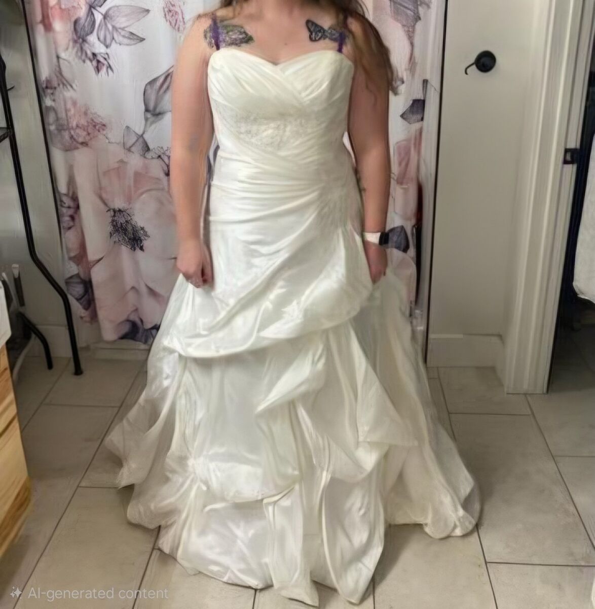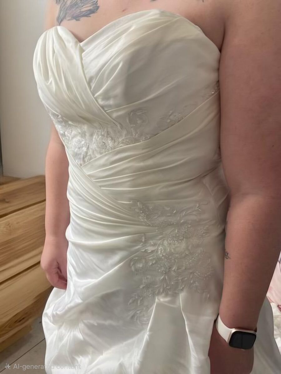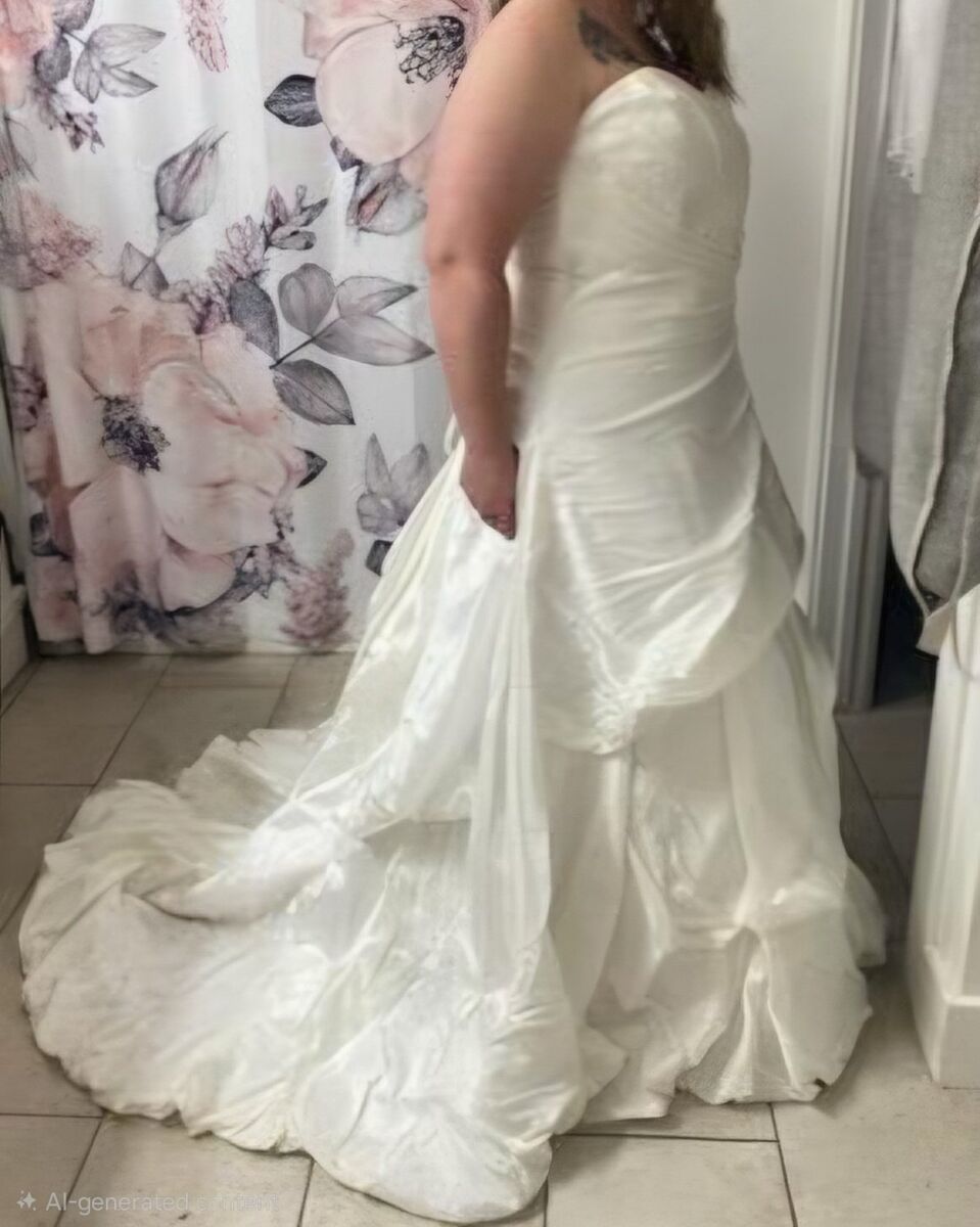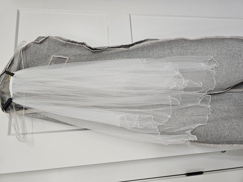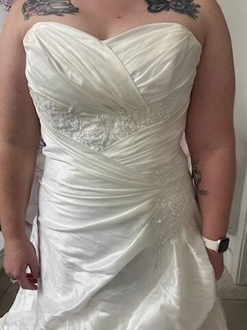 Wedding Dress with Veil. Corset Back. Size 13. Steamed cleaned and stored in zipper bag. Dirt stain on the bottom underside from outdoor Wedding but otherwise excellent condition. $500 obo