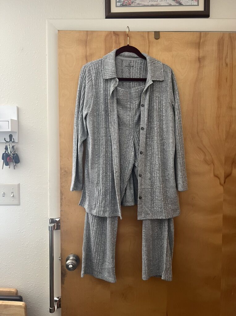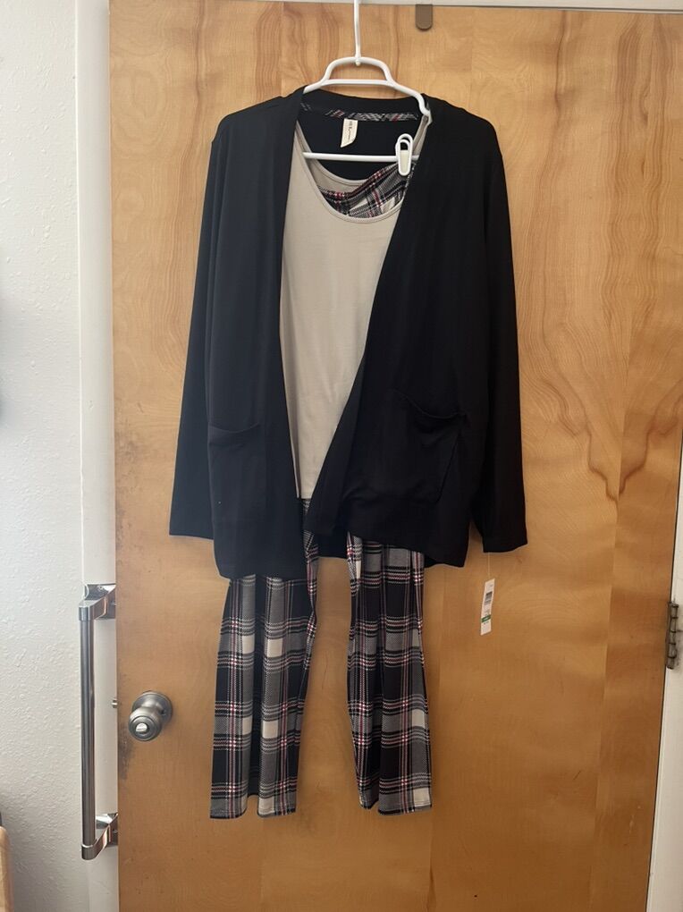 VenmoI have two women’s clothing sets size Large. One is Brand Hue the other is Cuddle Duds size is Petite large. These were both purchased from I believe HSN. My mother was a bit of an online shopper. The 3 pc set still has the tags and is a Pajama set. The 2pc set doesn’t have the tags but is new never worn is pants and a cardigan Asking $20 for the 3pc black and red set Asking $15 for the 2 pc grey set Both sets for $30 Located in Spanish fork Accept Venmo and cash. Message me with any questions.