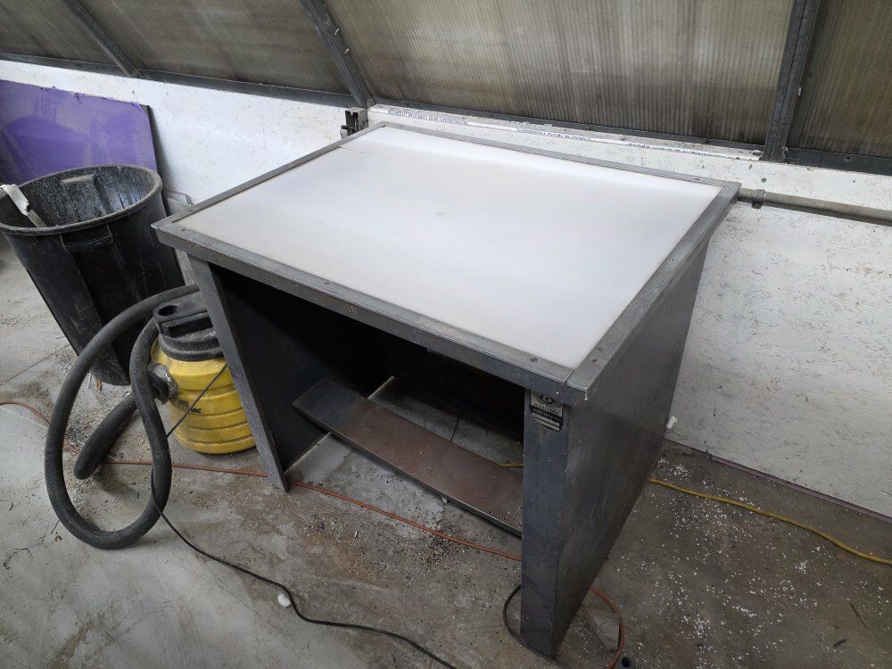 This is a very well built metal light table. The top bed is 42" x 32". The table stands 36.5 tall.