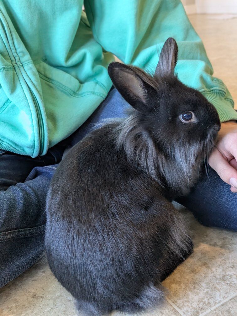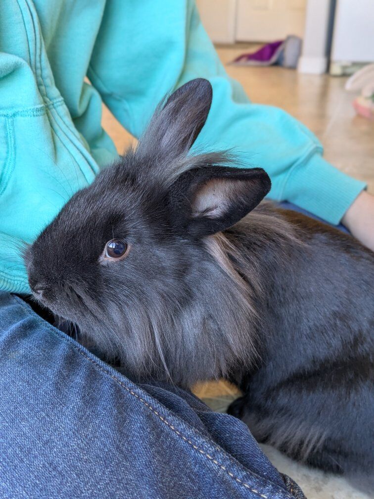 Cute and curious female rabbit. Born Nov. 8th. 12 weeks old. Lionhead/mini rex/ Holland lop mix.
