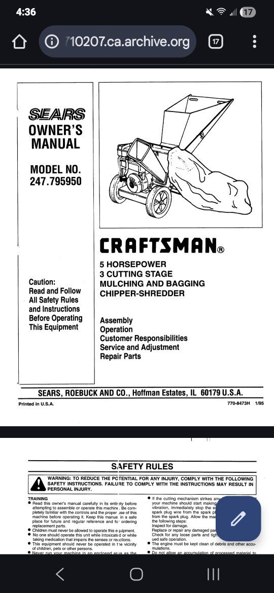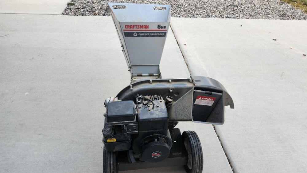 Venmocraftsman wood chipper shredder 5hp briggs. new carburetor runs perfect. Manuel says up to 3 inch