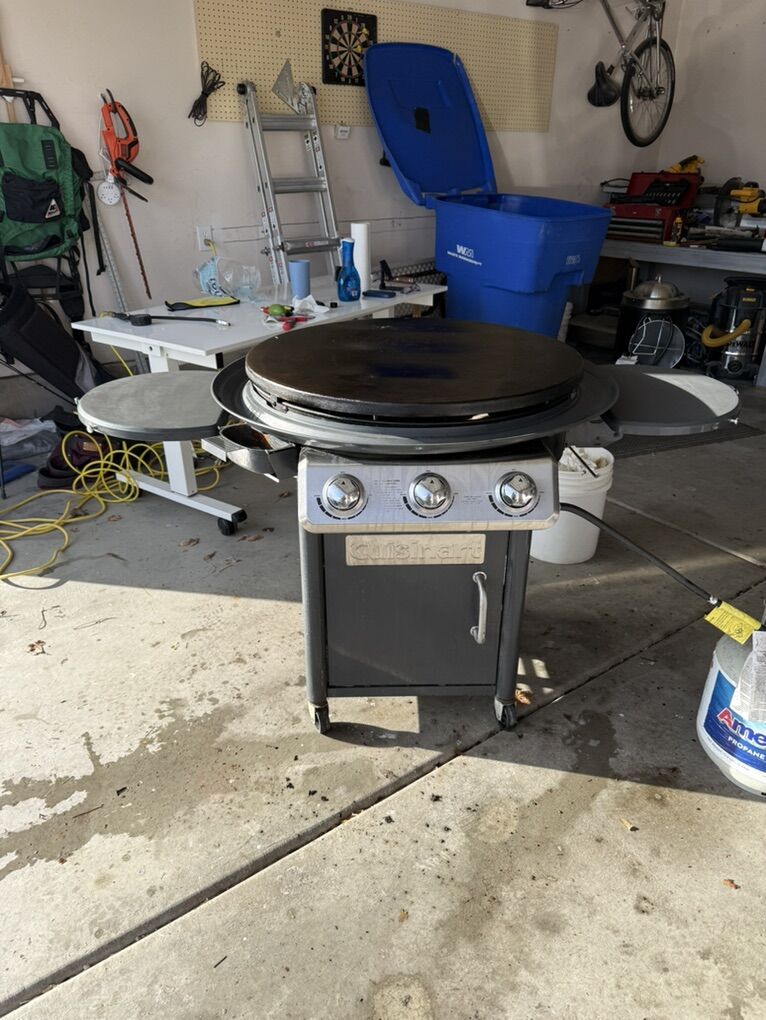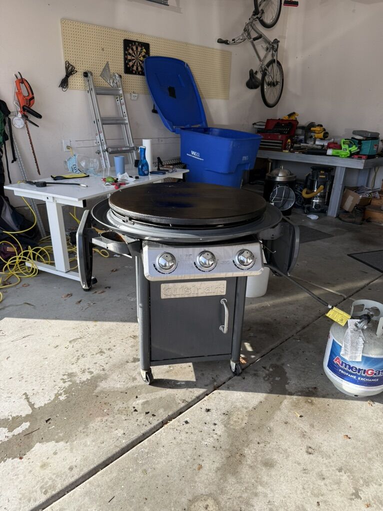 VenmoTake your outdoor cooking to the next level with the Cuisinart 360° XL Griddle Cooking Station. Featuring a spacious 30 flat top with 706 sq. in. of cooking surface, this powerhouse handles everything from breakfast feasts to dinner spreads. Three independently controlled burners let you create precise heat zones for versatile cooking, while the stainless steel lid with a built-in vent makes it easy to steam, roast, bake, or smoke. This griddle includes two folding side tables for prepping and serving, with a built-in paper towel holder for easy cleanup. The oversized 360° grease track funnels grease into the removable cup, making maintenance a breeze. With all-terrain wheels and quick assembly, this griddle is designed for effortless cooking at any BBQ, cookout, or tailgate.