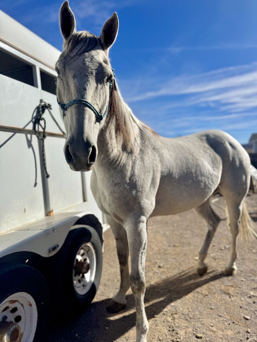 Smokey is sound, UTD on teeth, shoes and vaccines. He loads/unloads in trailers great.