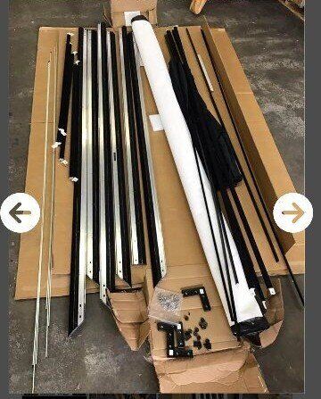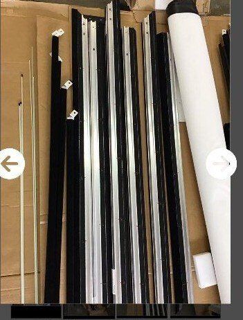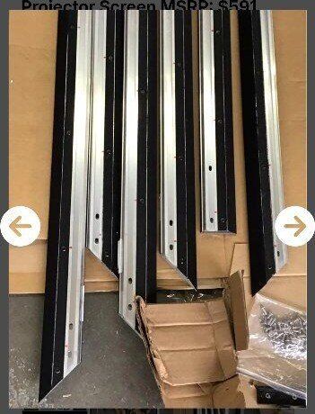 VenmoI have a used Elite Screens 4K Projector Screen in 150" that is ready for its next home with a little TLC for an amazing movie night. Has some bending to aluminum edges. One screw is stuck in corner and is stripped. Minor scuffing due to shipping. Please see photos. Hardware was loose, may be missing hardware. Originally over $800 Asking $60 OBO. My loss your gain. Cash or Venmo only. Located in Smithfield.