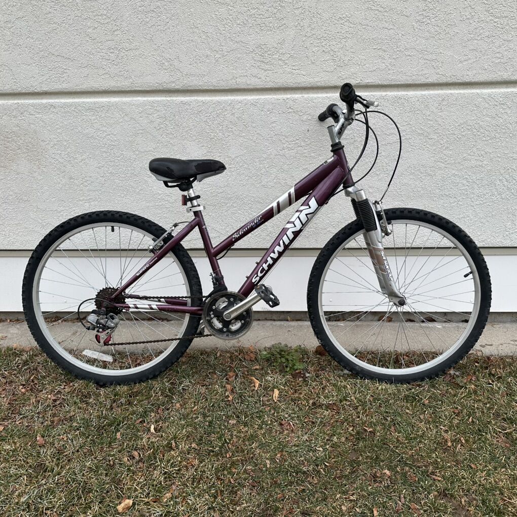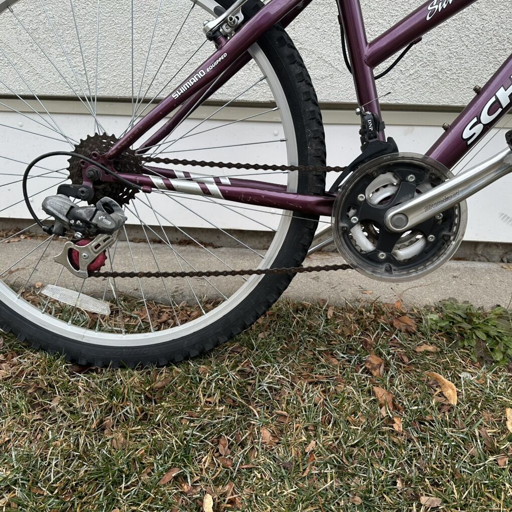 Has a 16” frame (size s-m), 21 speeds with twist grip shifters, rim brakes, and 26” wheels. Tubes have inserts to protect against flats.