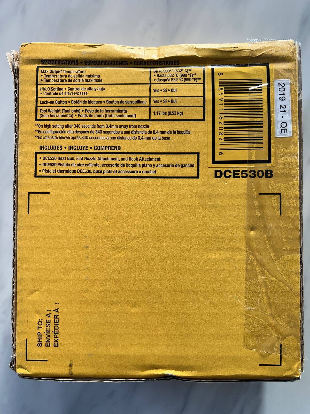 VenmoNew in box DeWalt Heat Gun Tool DCE530B and attachments. 20V Max Lithium Ion battery sold separately.