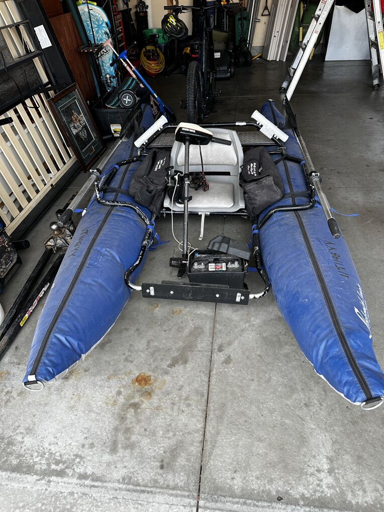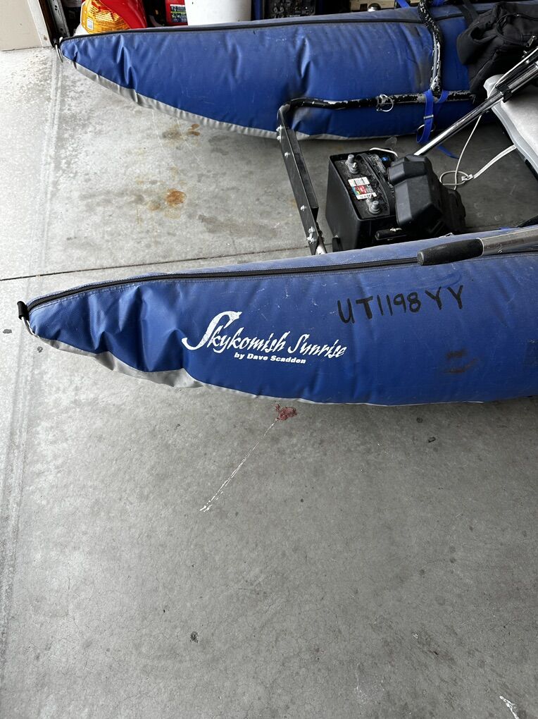 Skykomish Sunrise, Dave Scadden, Signature Series Pontoon. Comes with ores, motor, and a battery that needs replaced(kept to use as a core charge). Good condition. Large enough to float rivers. $300.00. Please call if interested. Jason at 801-807-9432