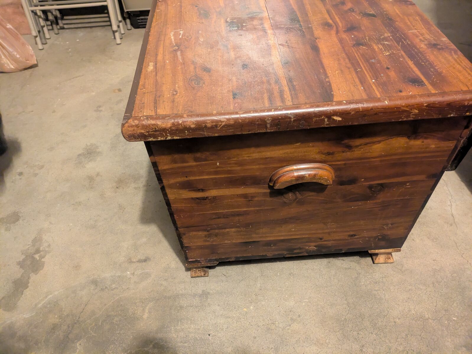 100+ year old handmade cedar chest. It has a sliding tray. Good condition considering how old it is.