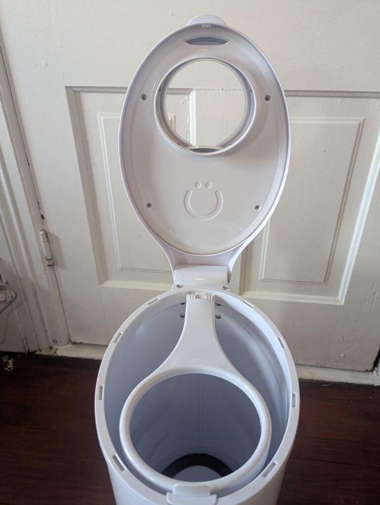 white ubbi diaper pail with lock