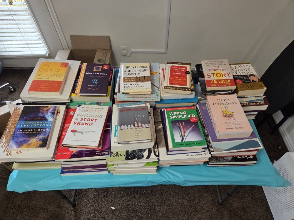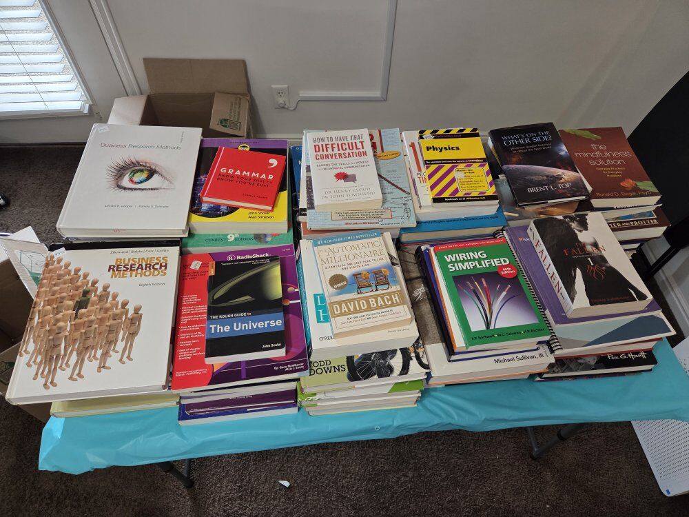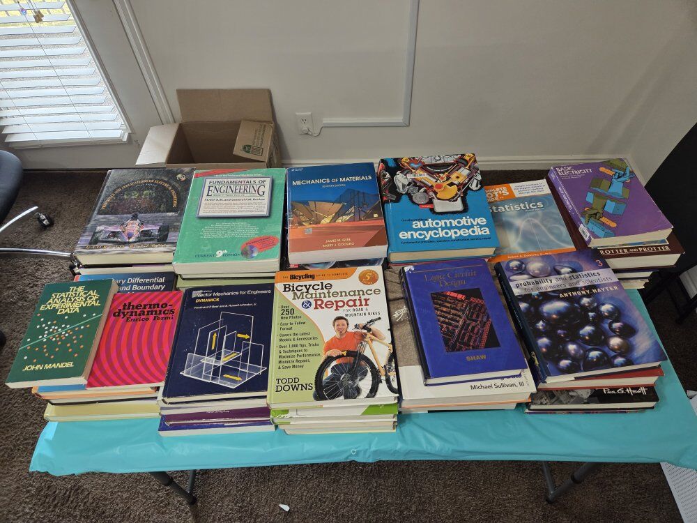 GooglePayTrying to downsize our collection lol. Math, physics, chemistry, engineering, automotive, mechanics, self help, leadership, programming, and more! $2 per book except the textbooks which are $5 per book. we can work out a deal if you buy a bunch though. $100 if you take all of them.