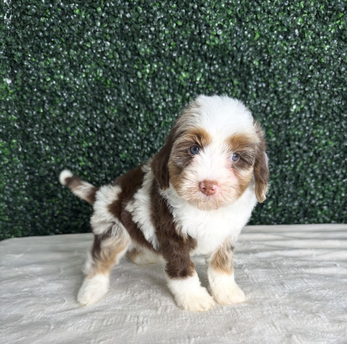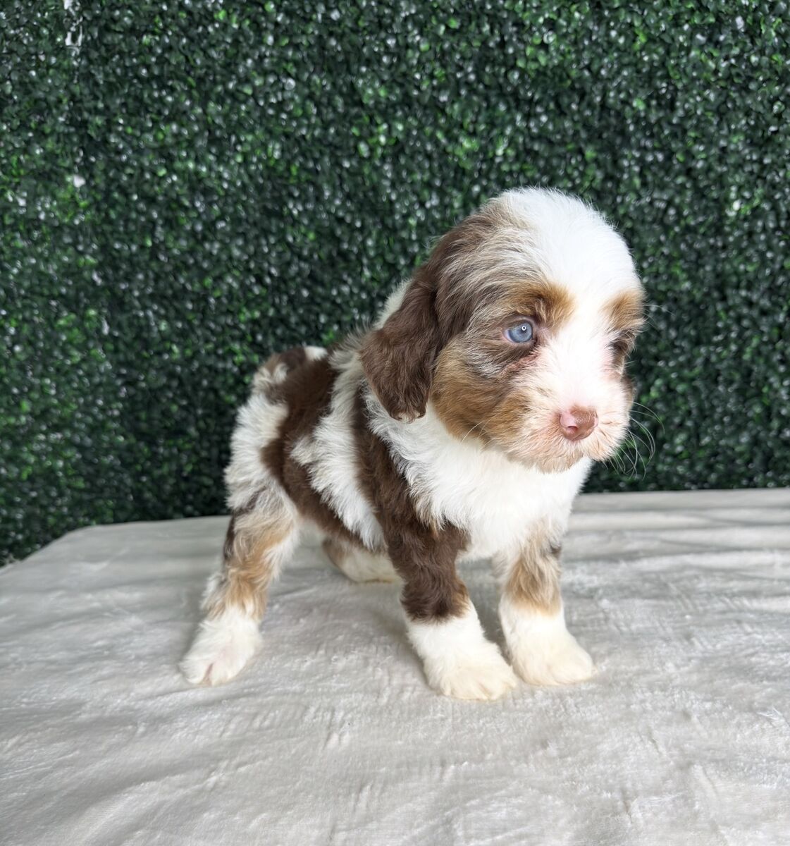 ApplePayMini chocolate Merle Australian Bernedoodle (no Aussie) tracking 25-32lbs Full grown.