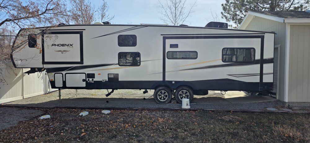 2021 Shasta Phoenix 30BH. Mid bunkhouse, 55 inch tv with electric fireplace in the back. 200w of solar on the roof and 3000w inverter Powering the bunkhouse, bathroom, and main bedroom. It has a hitch on the back to either pull dubbles or put a rack on. It has a little cosmetic damage on the driver side back corner but it's only cosmetic.