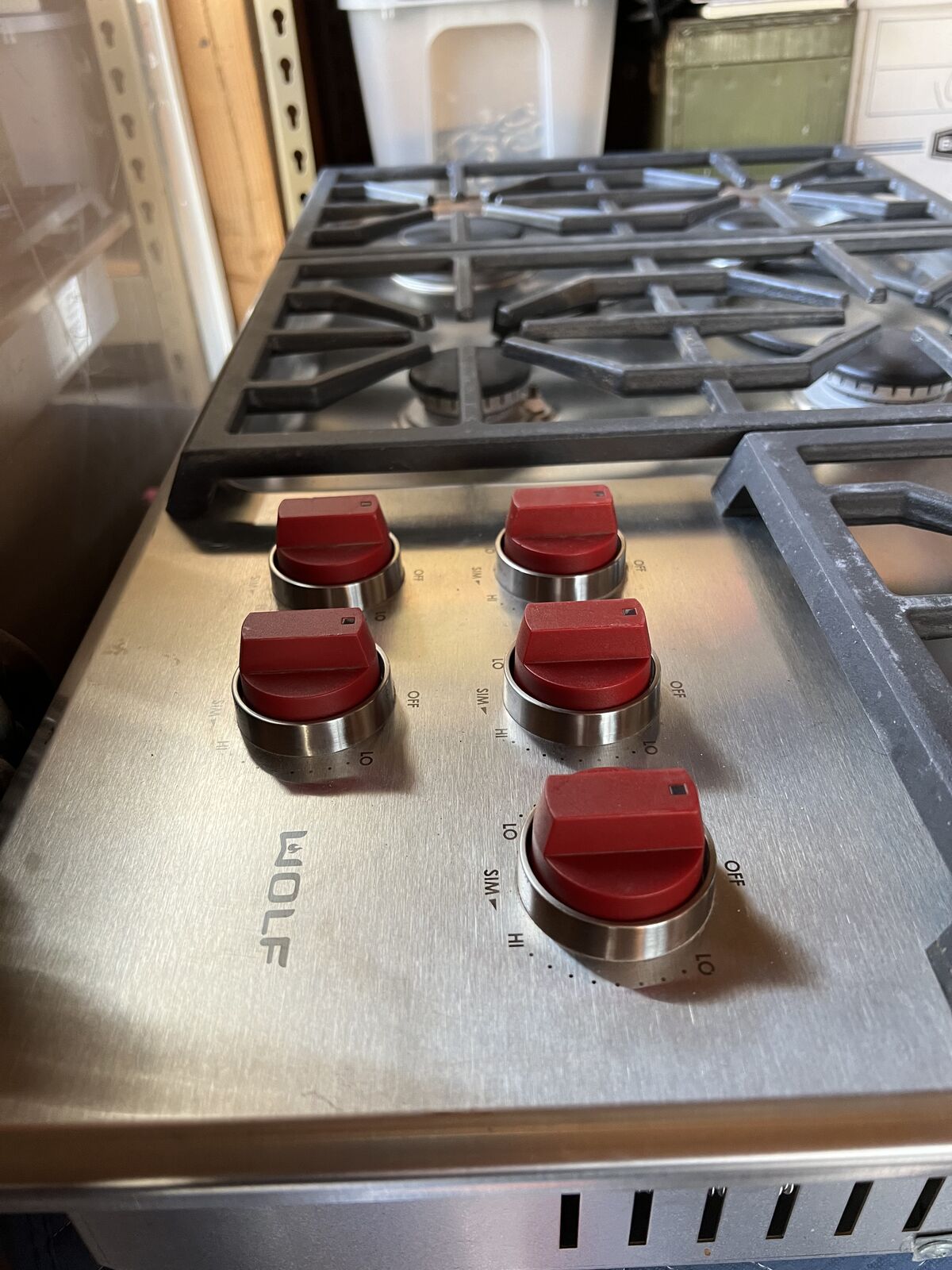 Wolf CG365P/S 36" Stainless Steel Gas Cooktop With red knobs. Was installed into a new lux home but buyer decided to go another way. It looks like the unit was never cooked on. Used ones sell on eBay for over $1200. Asking $795.00. OBO Call or text 801-706-2901
