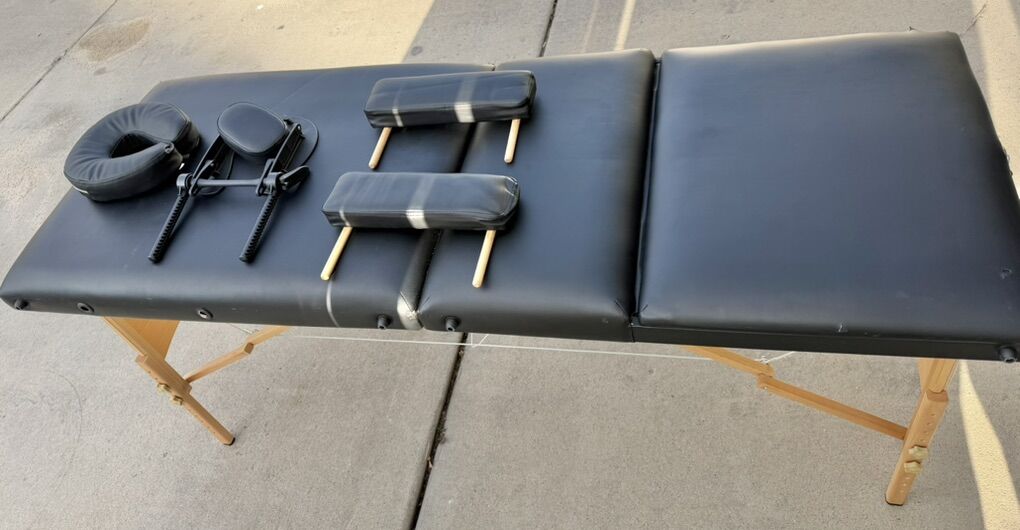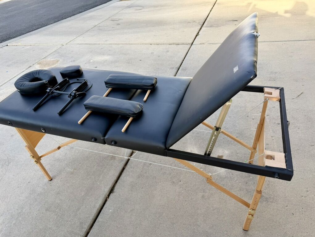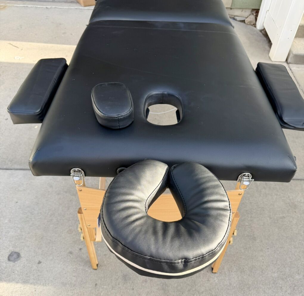VenmoUp for sale is a very nice portable massage table. Complete with headrest, armrests, face cushion, adjustable table, legs and .headrest.See photos.