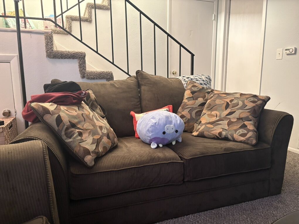 ApplePayOne love seat and a regular sofa in dark olive green in great condition need gone asap