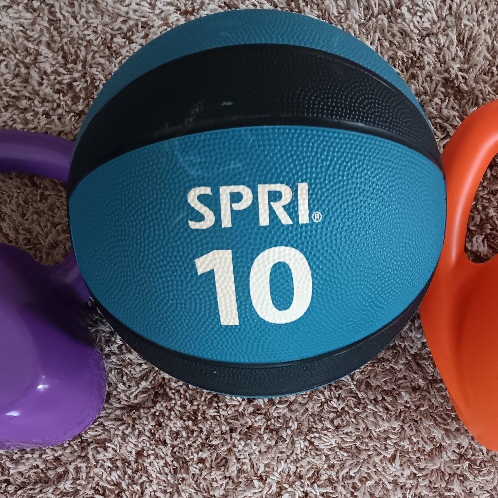VenmoTwo weighted (8 + 15 lbs) cattlebells & a 10 lbs weighted exercise ball & a 5 lbs dumbbell $ 40 for all 4