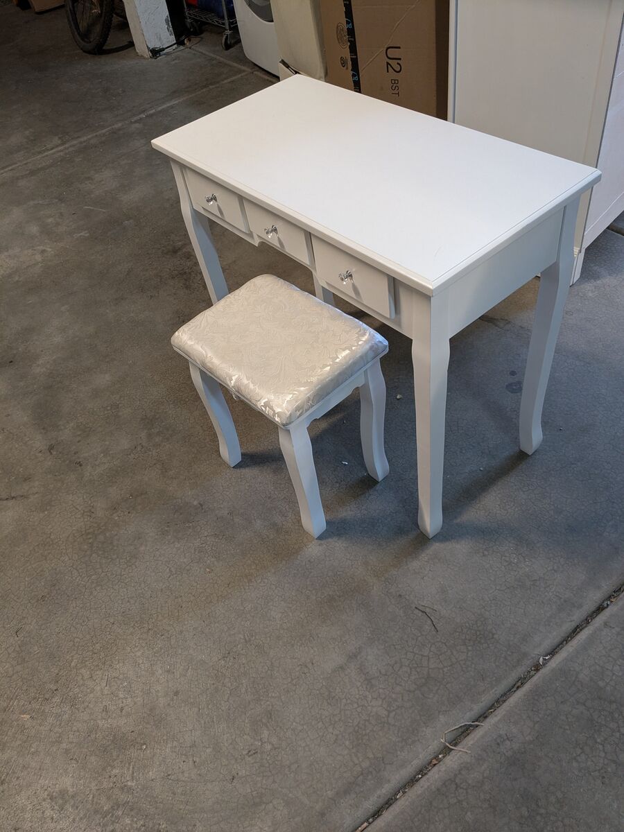VenmoWhite small desk with three drawers and chair 15.75D x 31.5W x 27.5H