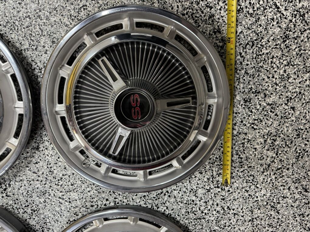 ApplePayThese are vintage super sport hubcaps. I found them in my father‘s attic as we are preparing for an estate sale. Don’t know exactly where they came from or what size they are. It appears they would fit a 14 inch General Motors wheel. They are in pretty good shape as they’ve been in storage for roughly 40 years. Maybe longer.