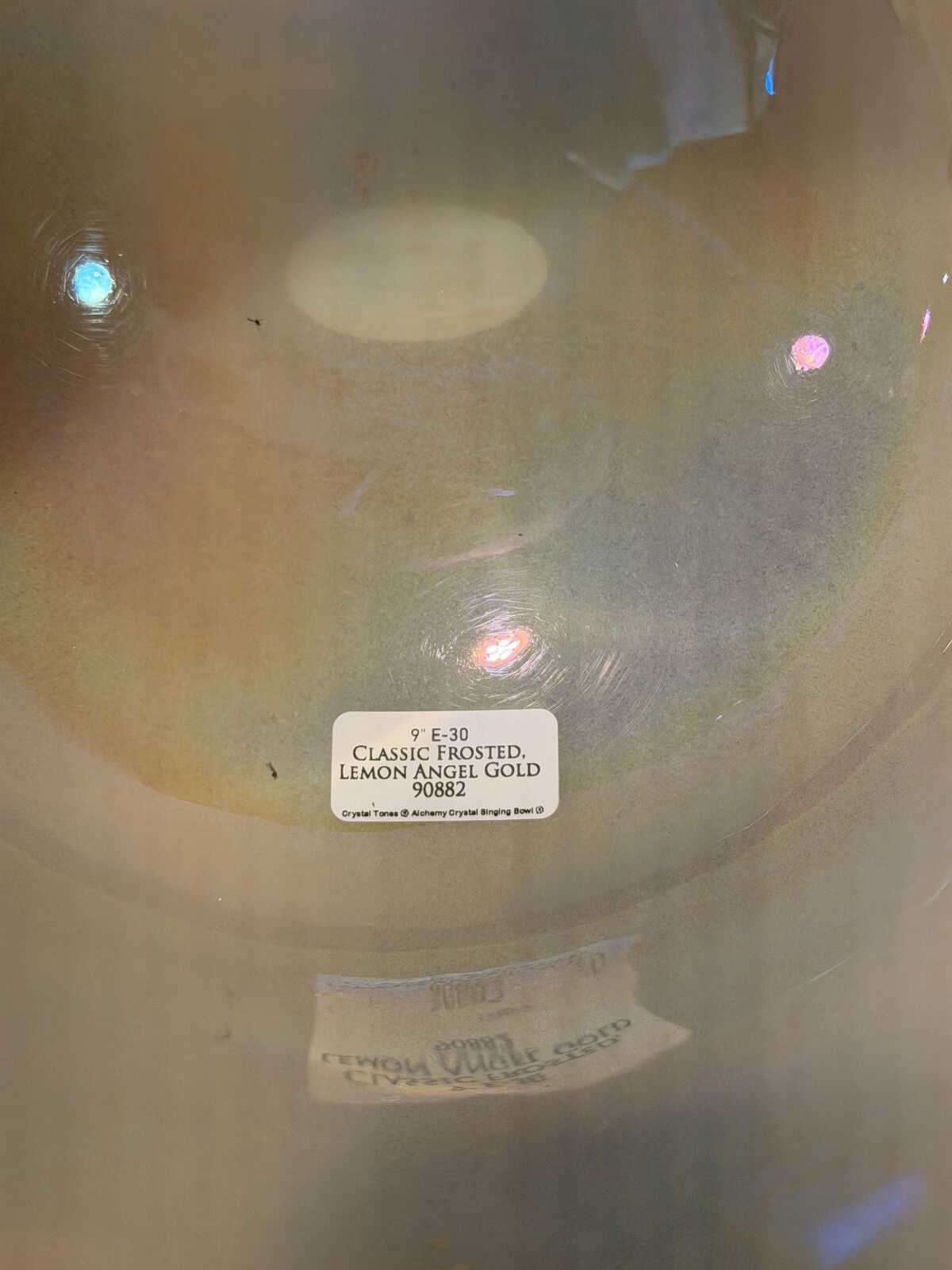 Specifications of each: 12” E-50 Peridot, Frosted Rim 10” A-40 Frankincese, Frosted Rim 10” B-45 Lemurian Seed, Moldavite, Platinum 9” E-30 Classic Frosted, Lemon Angel Gold 9” C#-50 Shungite, Frosted Rim 7” B-40 Frankincense, Palladium 6” C# Frankincense 6” A-45 Zeal Point Aura Gold