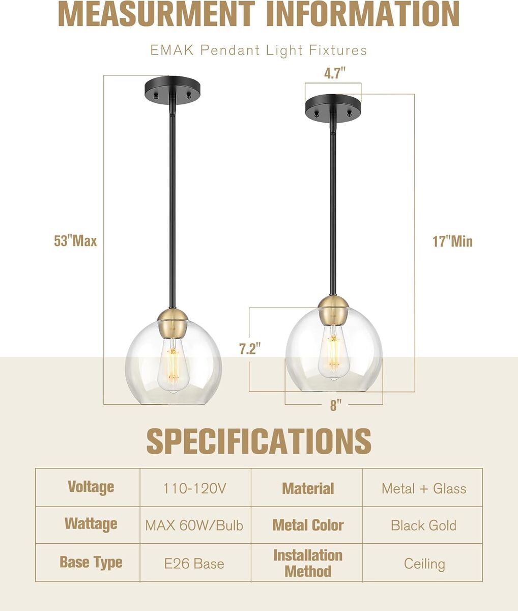 About this item - [Trending Design] This black gold pendant light by EMAK adds charm to any space.Crafted with meticulous attention to detail, it merges classic and modern elements to transform into not just a lighting fixture but a statement piece of art, adding a striking decorative touch to any room.