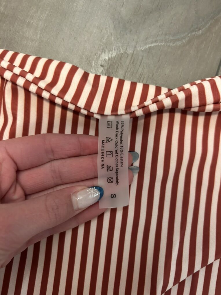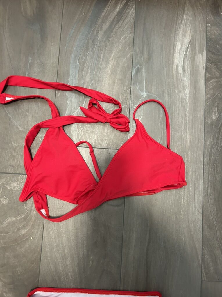 VenmoRed triangle bikini removable pads—brands new-never used women’s size S: $3 Brown and white stripped bikini low waisted bottoms—brand new-never used women’s size S: $2 Green and white stripped bikini low waisted bottoms—brand new-never used women’s size S: $2 Yellow bikini top—never used women’s size M: $2 Purple and white stripped ruffle bikini removable pads, high waisted bottoms—brand new-never used women’s size S: $5