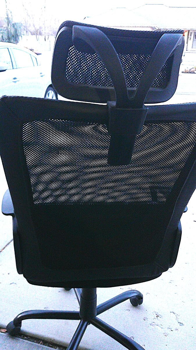 VERY NICE LIGHTWEIGHT MESH OFICE CHAIR / ADJUSTIBLE HEAD REST, ADJUSTIBLE HEIGHT AND BACK REST / CLEAN, BARELY USED.
