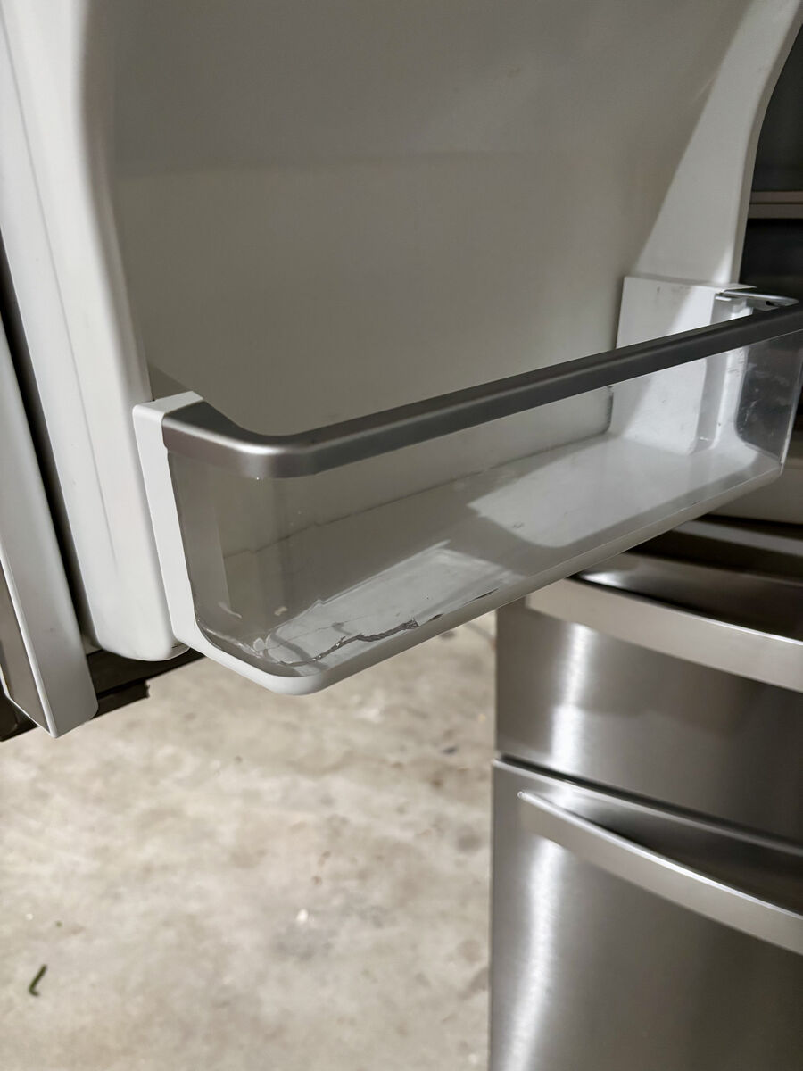 I attached a photo of one minor defect which is a crack in the small side door shelf. Could be easily replaced.