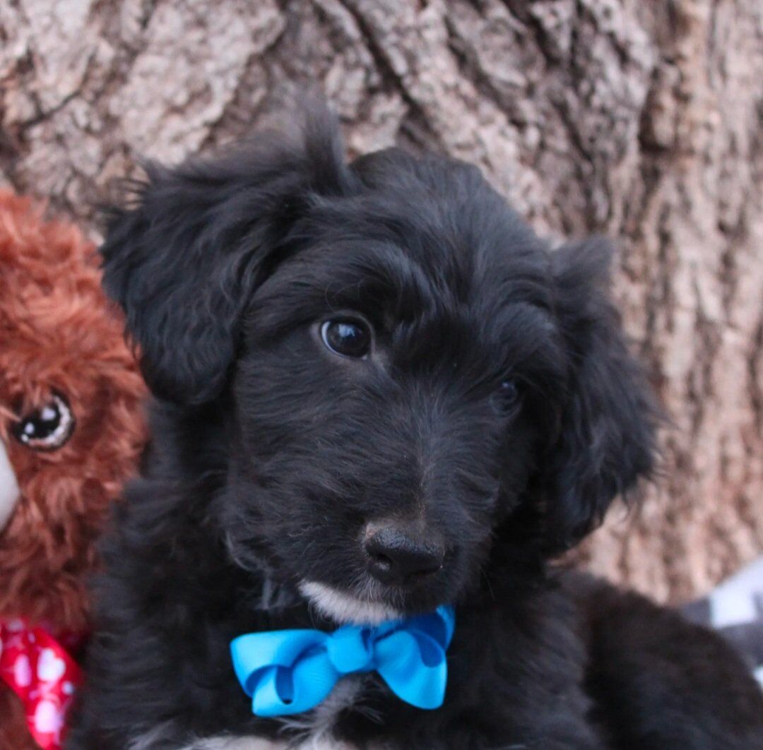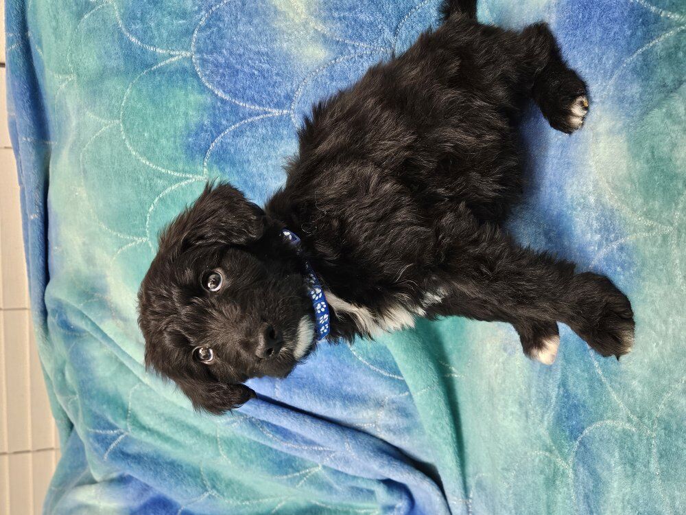 ZelleMeet North! North is the sweetest, cuddly boy ever. At 9 weeks old, he's just the perfect age for cuteness, snuggles and playfulness. He's a bit shy at first, but once he's warmed up, he just loves to climb into your lap and soak up all the attention he can get. He's still definitely a puppy, and has a very playful side to him once comfy with his surroundings. North has had his first vaccine and deworming, he’s making great progress with puppy pad training and learning to walk on a leash. He also is being socialized with our cat, Splash, and is growing up around farm animals. His parents are both around 40 lbs, making him the perfect medium-sized boy full grown. The dad, Rugby, is a handsome Health tested Border collie, and the mom, Ruby, is our sweet Poodle who is AKC registered. He will be hypoallergenic. If you want to know more about our sweet boy feel free to shoot me a text. For a quicker response text me at (435-668-6267) I am happy to answer any questions you may have. Please note; North is located in Hurricane Utah, but we will deliver him to Provo Utah FREE, with a $100 deposit to secure him. We also can deliver to Las Vegas