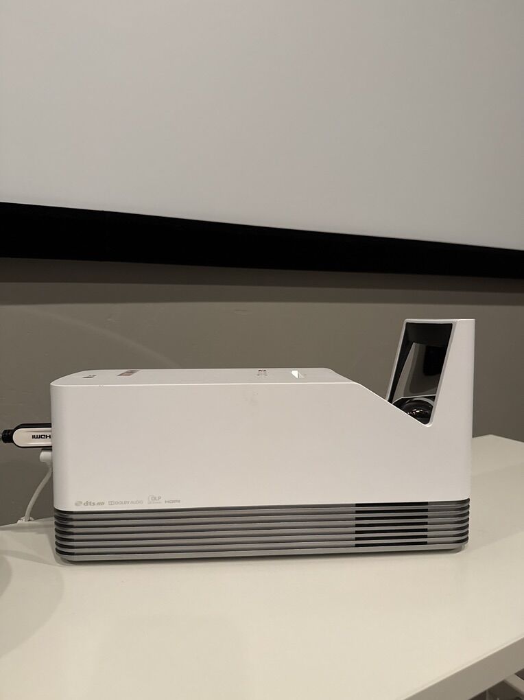 VenmoLG HF85LA ultra short throw LED projector in excellent working condition. Produces a large, bright image from just inches away from the wall. 1080p resolution with built-in speakers. Clean, modern design and easy setup.