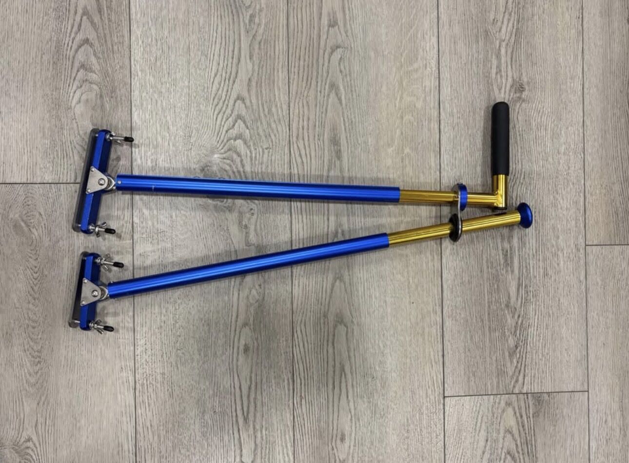 Designed to assist drivers who need hand-operated controls instead of foot pedals. Adjustable metal construction with non-slip handle grips.