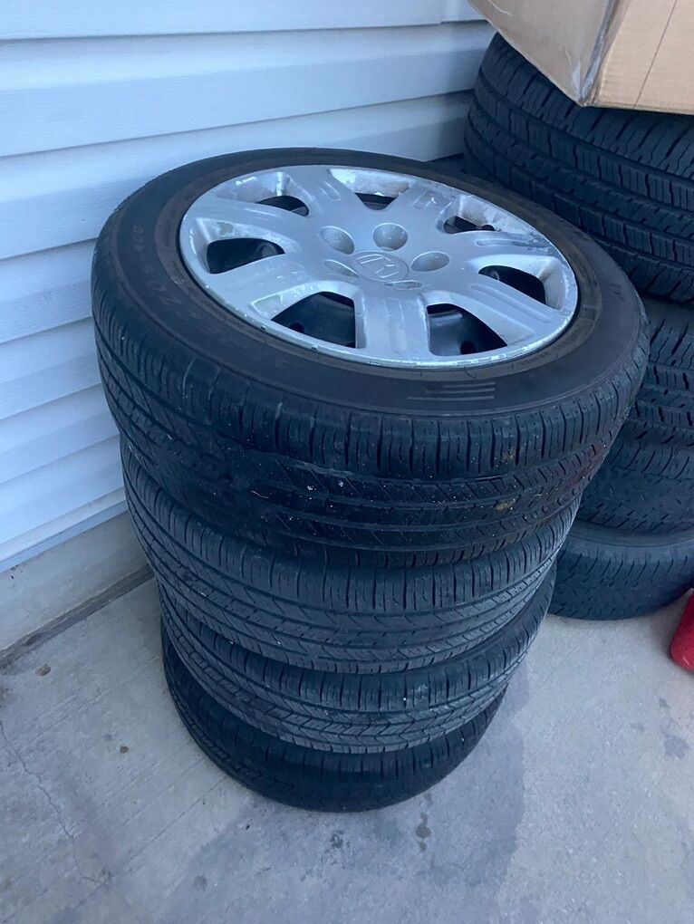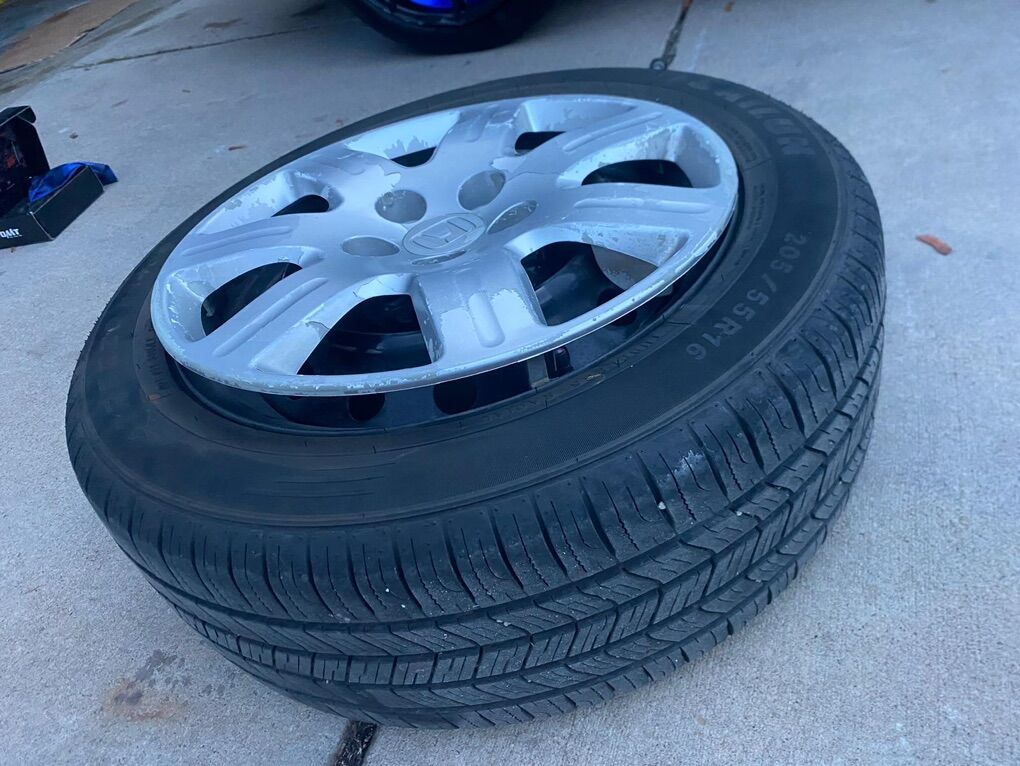 This tires are in good condition. They are size 205-55-r16