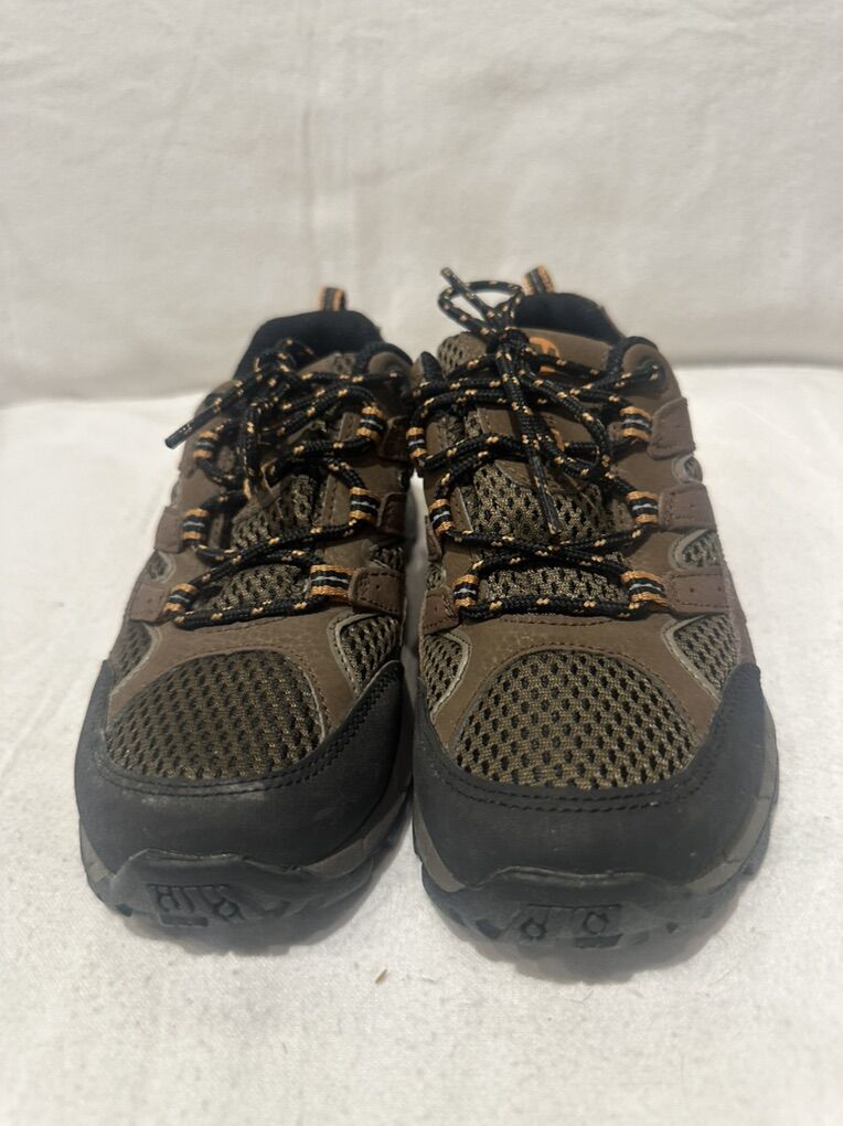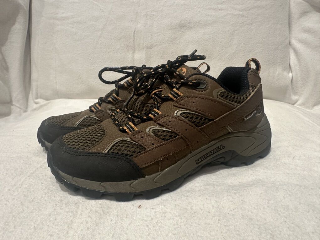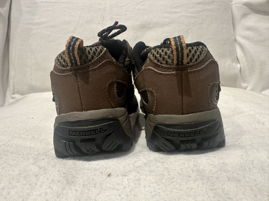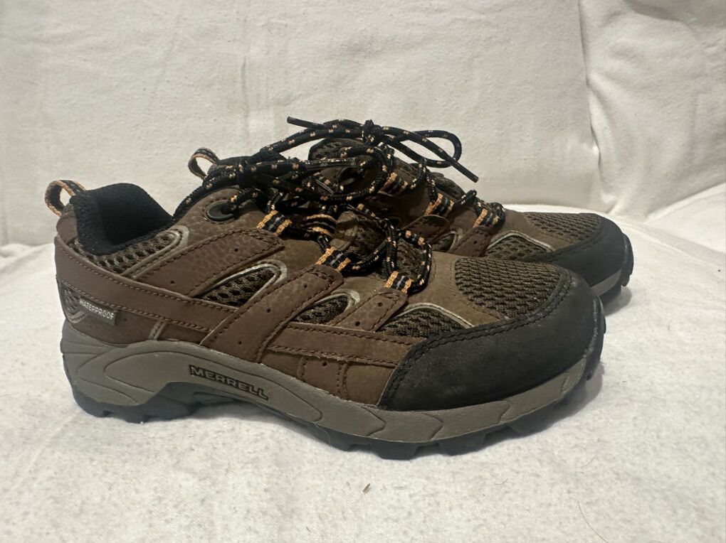 Merrell Moab 2 youth size 1 brown mesh, and leather with orange trim, waterproof, hiking shoes. These are in good condition, see photos for details. I take cash for Venmo, but cash is preferred. Text is best. 801-201-4446. Check out my other ads for additional sizes and styles.