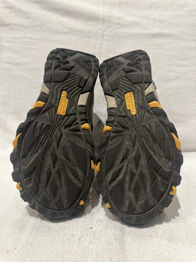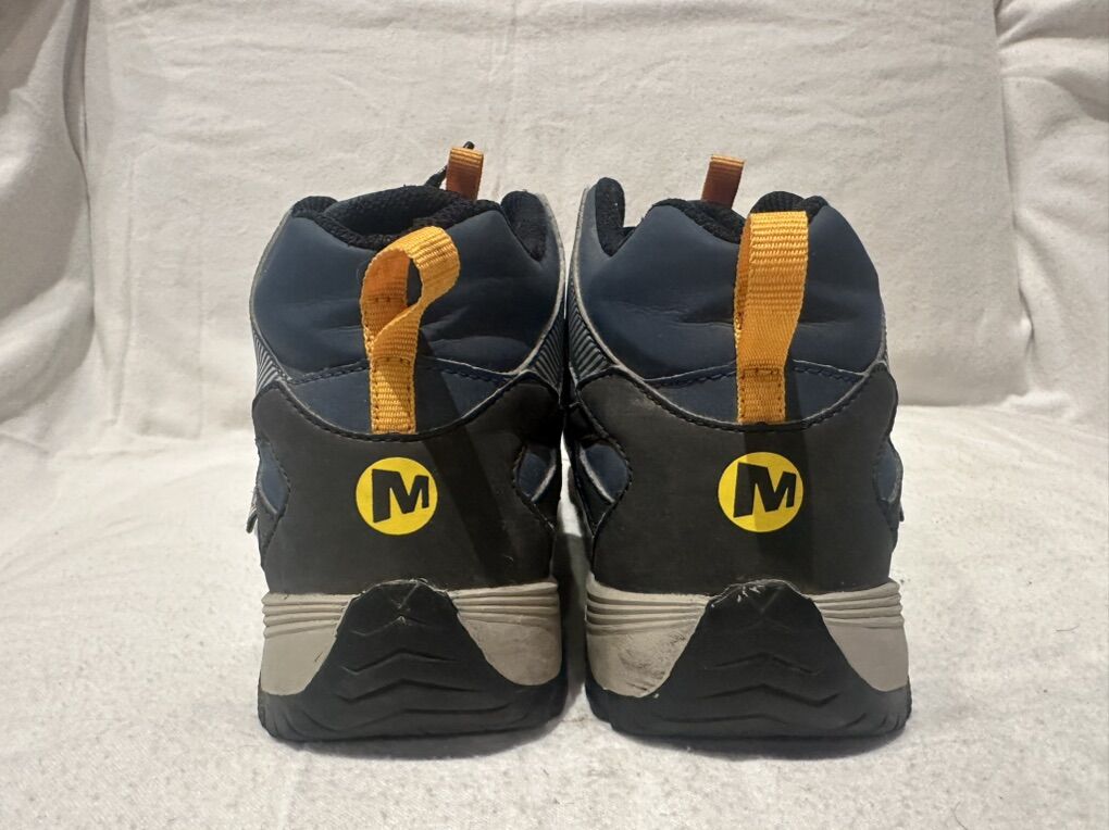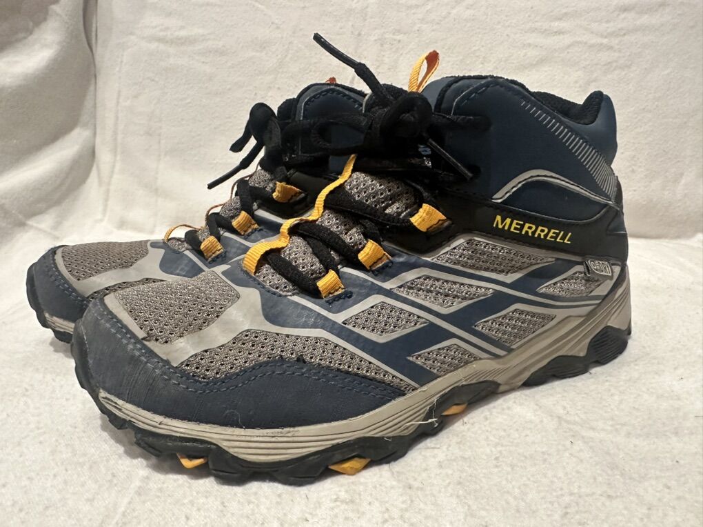Merrell Moab youth size 5, gray with blue and yellow trim, mesh and leather waterproof mid hiking boots that lace up the front. These are in good condition, see photos for details. I take cash or Venmo, but cash is preferred. Text is best. 801-201-4446. Check out my other ads for additional sizes and styles.