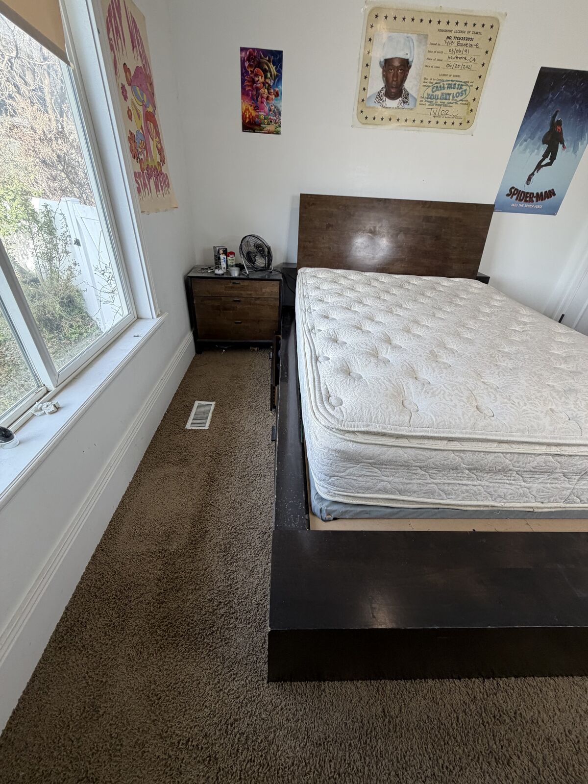 The queen bed set includes the bed frame, matress and bedside drawer set.