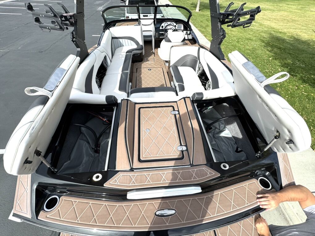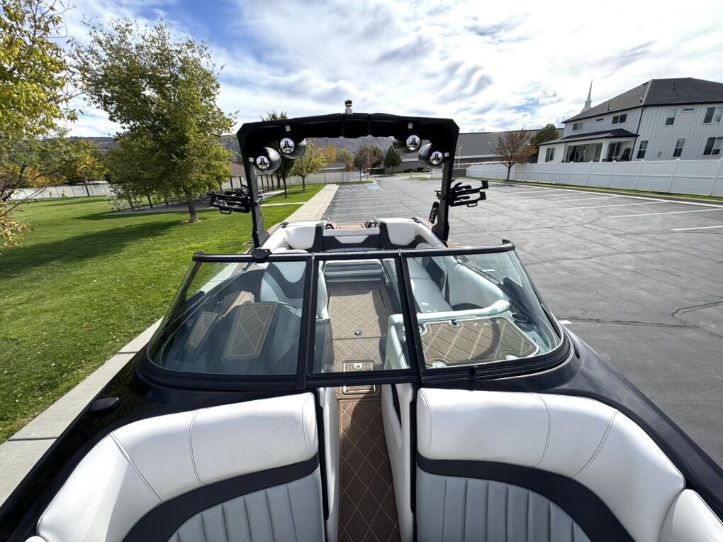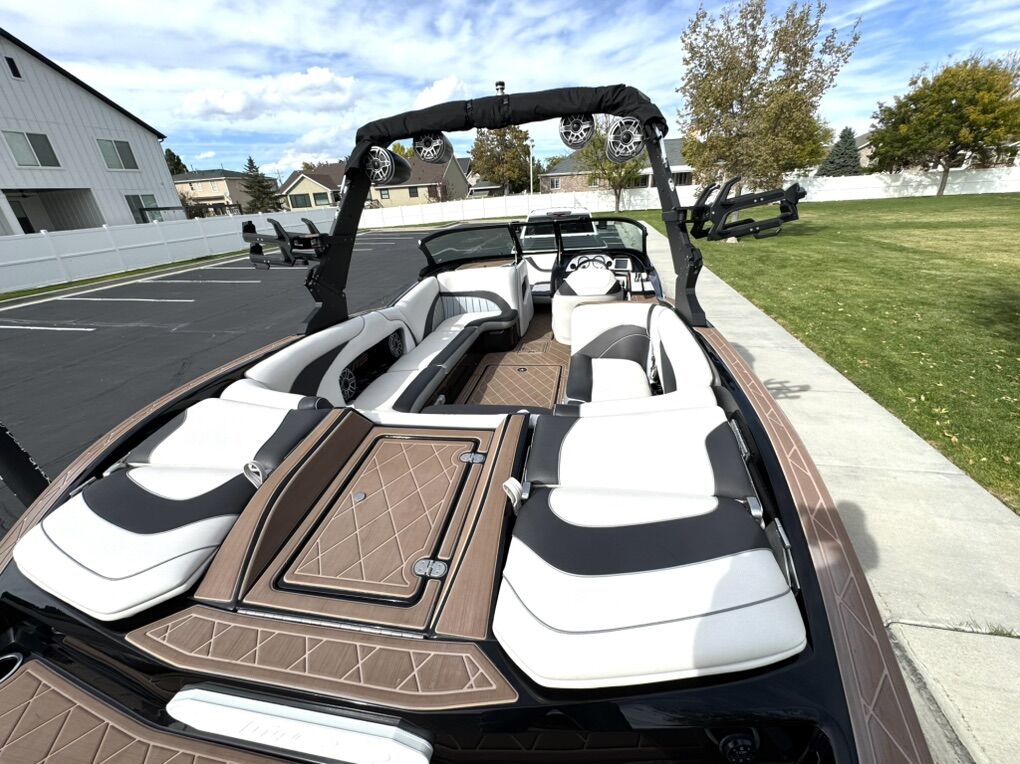 2022 MB Sports B52 Alpha 23 in excellent condition. Everyone loves THE WAVE! I’d put it up against just about any other boat out there for surfing. The deep v is also great in rough water. It has been stored inside our garage and well maintained. Spacious boat and fits a lot of people. The playpen bow is huge. Also has tons of storage. In great condition and comes with options and features listed below: Indmar 400 Motor MB's Solid Billet Tower (Collapsible) Swivel PTM Board Clamp Racks LED Tower Lighting Bimini (4) JL Audio Tower Speakers, (1) 10 Sub, (2) Amps, (4) 6 Speakers, (2) 6 Bow Speakers Powder Coating Mirror Heater Heated Captains Seat MB Surf Switch System Quick Plane CAV Plate Bow Ballast Bag (500 lbs) Pump In/Pump Out MB's Gravity Fed Ballast System (2000 lbs) In/Out MB's Plug N Play Ballast System (2200 lbs) Pump In/Gravity Release Out LED Theatre Lights Underwater Surf Lights Drop Down Step Ladder Touch Screen Extra Bow Cleats Custom Gator Step In Floor Trash Can Built In Cooler Dual Batteries Tandem Axle Trailer w/ 20 Wheels Spare Tire Surf Exhaust Pipe Hinged Rear Seating Moveable Bench Seat 65 Gallon Gas Capacity Seating Capacity 16 509 Hours Text or message with any questions. I’d be happy to keep storing it in my garage for a couple more months for you as well. I figure people might be looking now with the boat show going on.