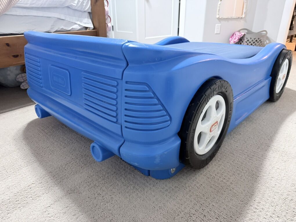 Little Tikes Race Car Bed and mattress. Blue