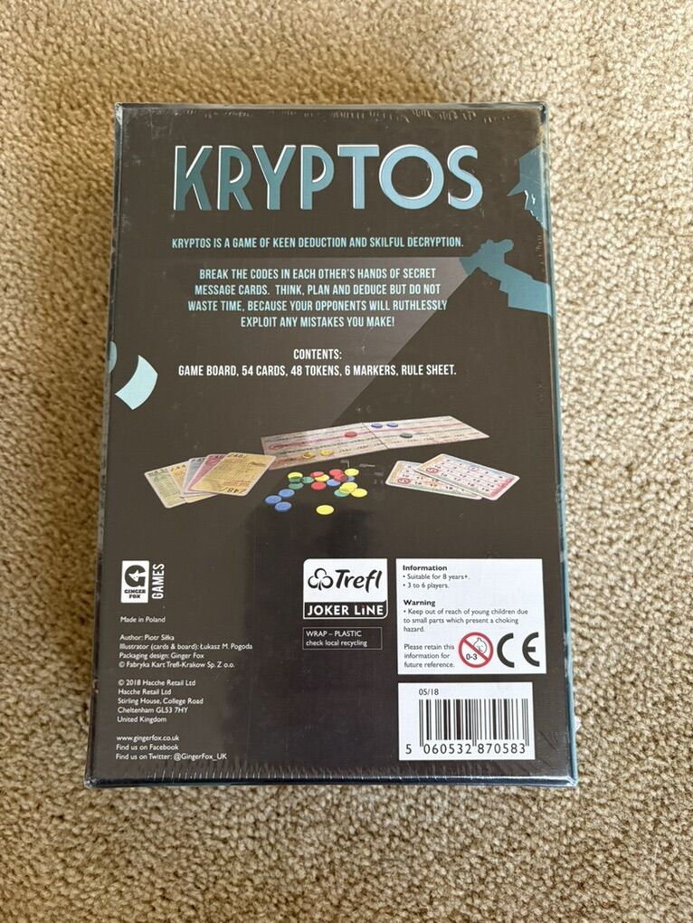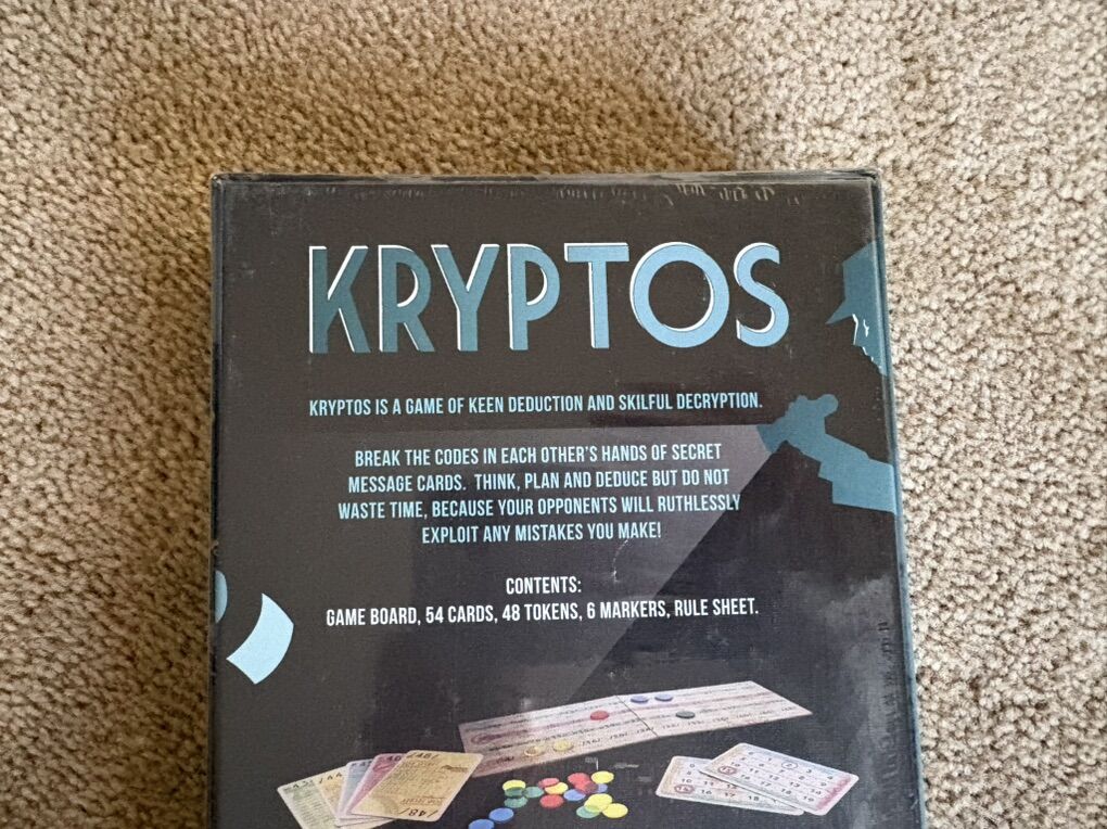 NEW (sealed in plastic) Kryptos: a game of keen deduction and skillful decryption. Ages 8+, 3-6 players. Ginger Fox Games, 2018. New, unopened condition. Text only. Cash or Venmo.