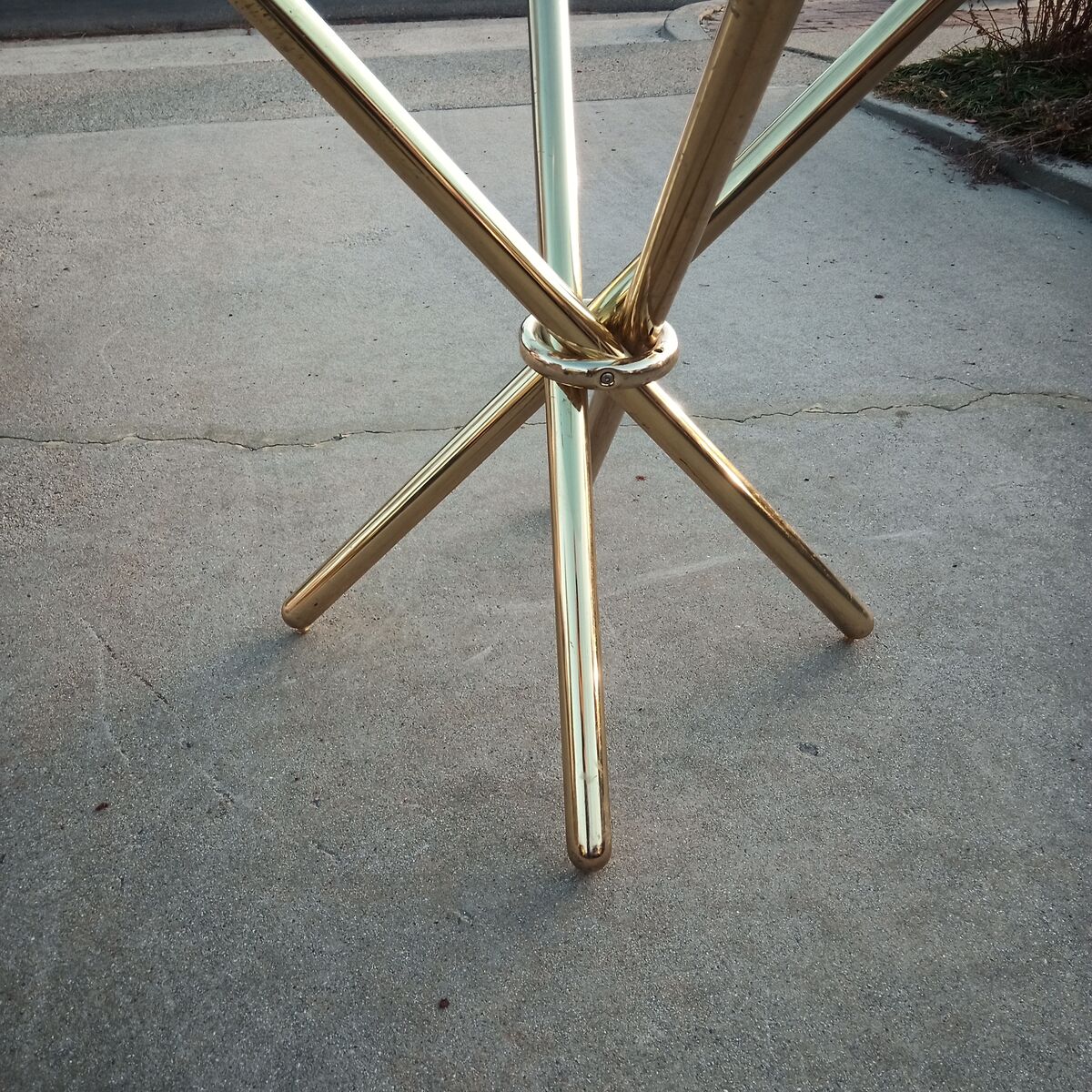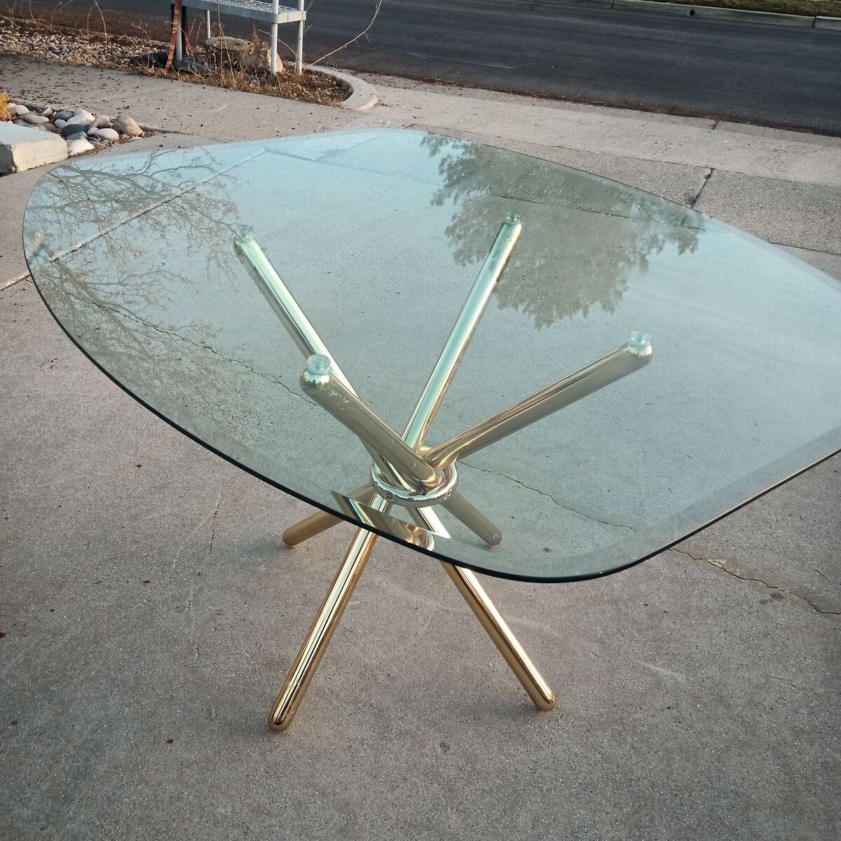 Vintage, Mid Century, Chromcraft dining table with a brass 'jacks' pedestal base and a bevelled glass top.
