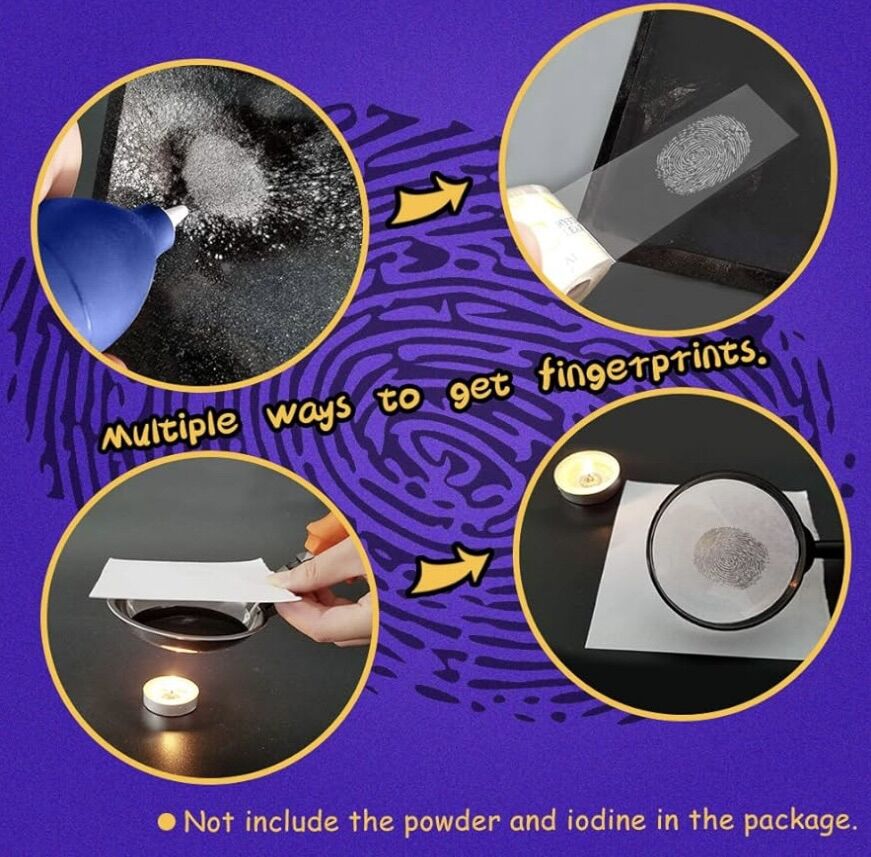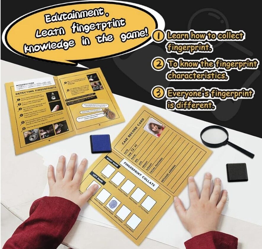 VenmoBLOONSY Spy Kit for Kids Detective Fingerprint Toys. • Designed for children aged 6-12 years old. • A fun STEM (Science, Technology, Engineering, and Mathematics) toy set that encourages hands-on learning. • Includes tools like fingerprint powder and a secret code wheel to help kids solve cases. • Allows children to explore the techniques and tools real detectives use to collect evidence.