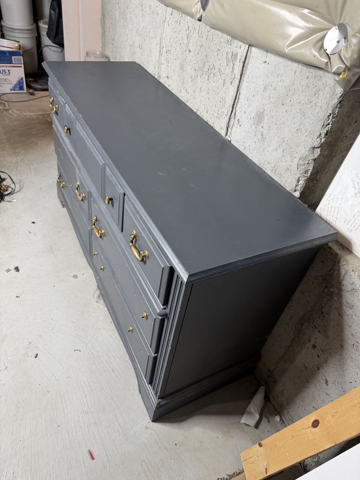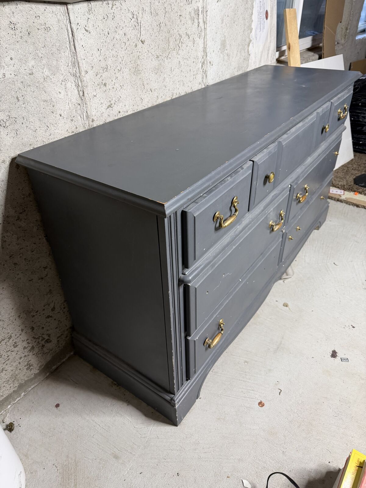 Durable dresser 7 drawer set. Add the hardware you like to match your style. 18" deep x 30" tall x 56" long.