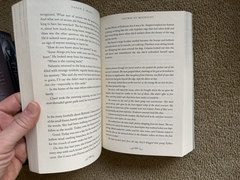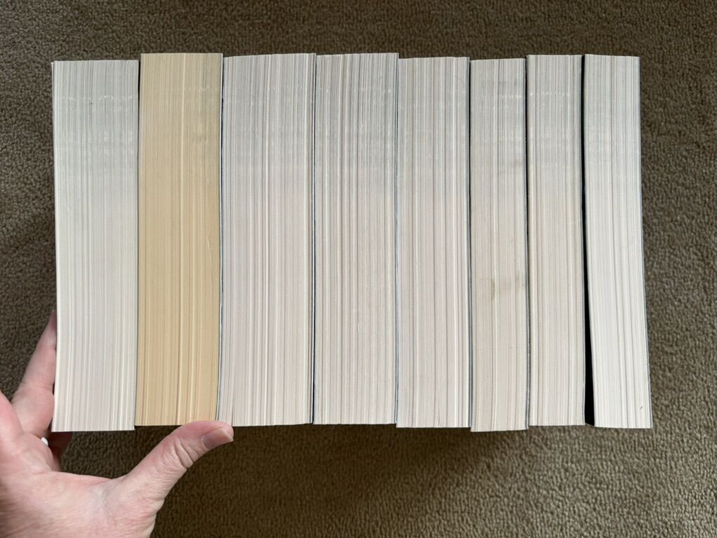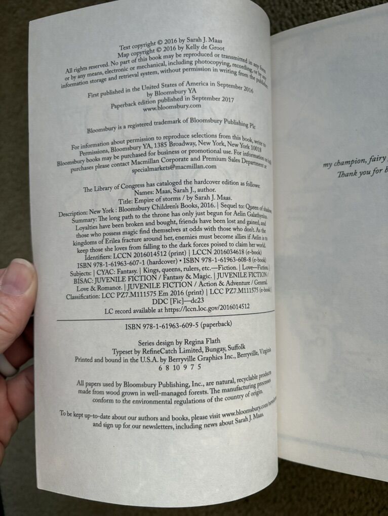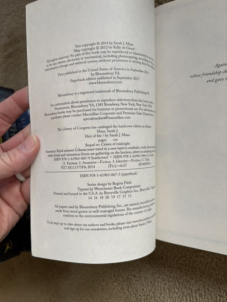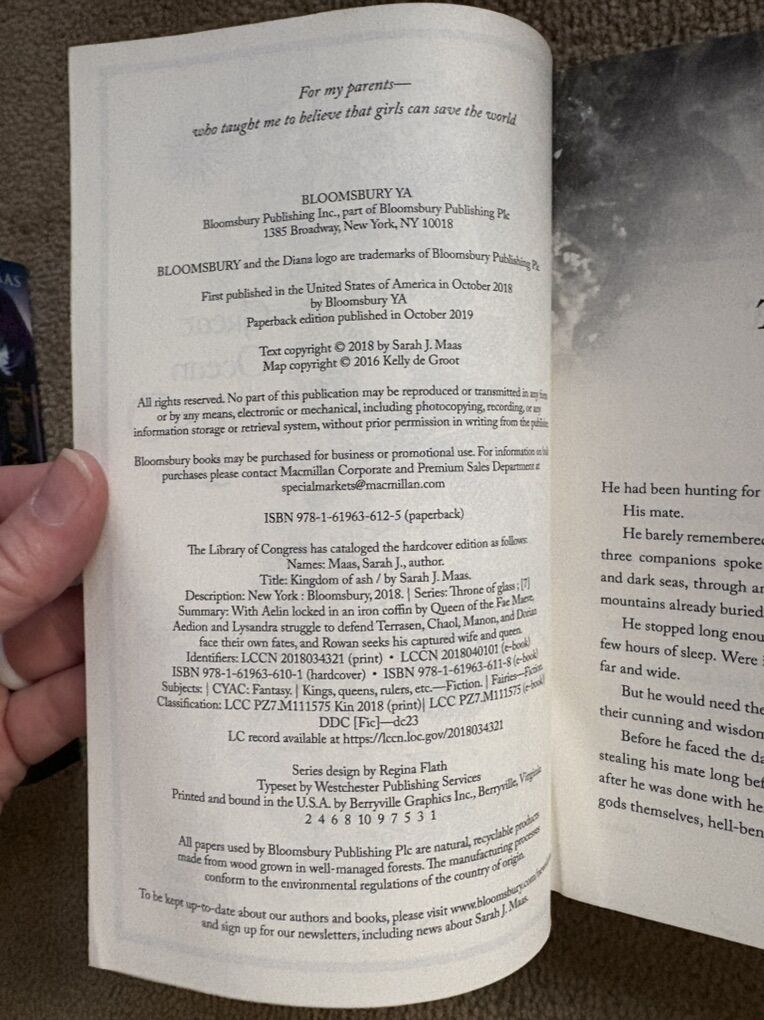 Throne of Glass Complete Series, by Sarah J. Maas: The Assassin’s Blade (Novellas/Prequel, 2014, 435 pages), Throne of Glass (2012, 406 pages), Crown of Midnight (2013, 420 pages), Heir of Fire (2014, 565 pages), Queen of Shadows (2015, 648 pages), Empire of Storms (2016, 693 pages--one small tear on first page), Tower of Dawn (2017, 663 pages), and Kingdom of Ash (2018, 980 pages). Bloomsbury. Paperbacks in excellent condition. No marks, all spines unbroken. Text only. Cash or Venmo.