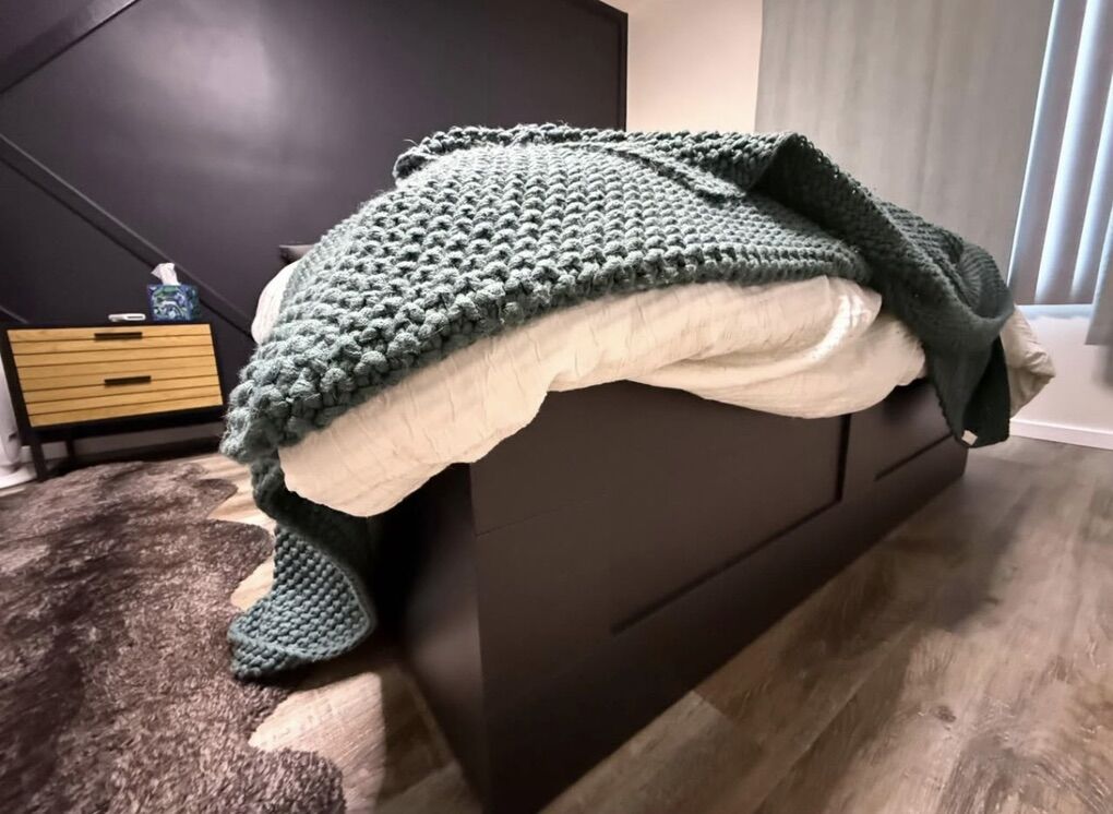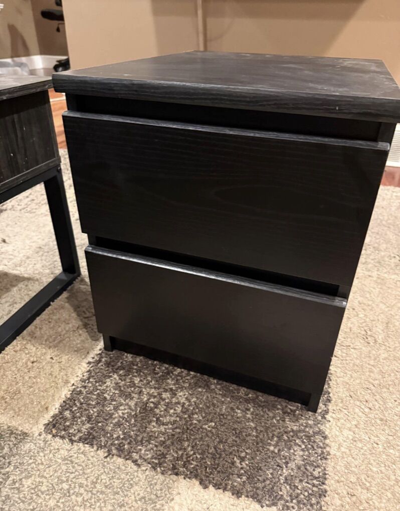 ApplePayBlack queen size bed frame and wood slats from Ikea with 4 fully functional and deep 22inch drawers. Super nice for extra storage space. Retails for $350. Mattress not included. Bed is already disassembled with all parts and manual included. Comes with 2 drawer nightstand 20” x 20”. Pickup in West Jordan near Gardner Village