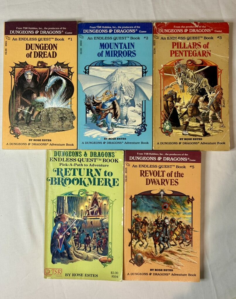 PayPalThis is a lot of the first 10 Dungeons & Dragons Endless Quest books from TSR’s original 1982 release. If you’re a D&D and/or fantasy nerd like me, these books are a MUST-HAVE! These “choose your own adventure” stories in the D&D universe are incredibly fun! Make it yours! Flexible on pricing for serious buyers/collectors.