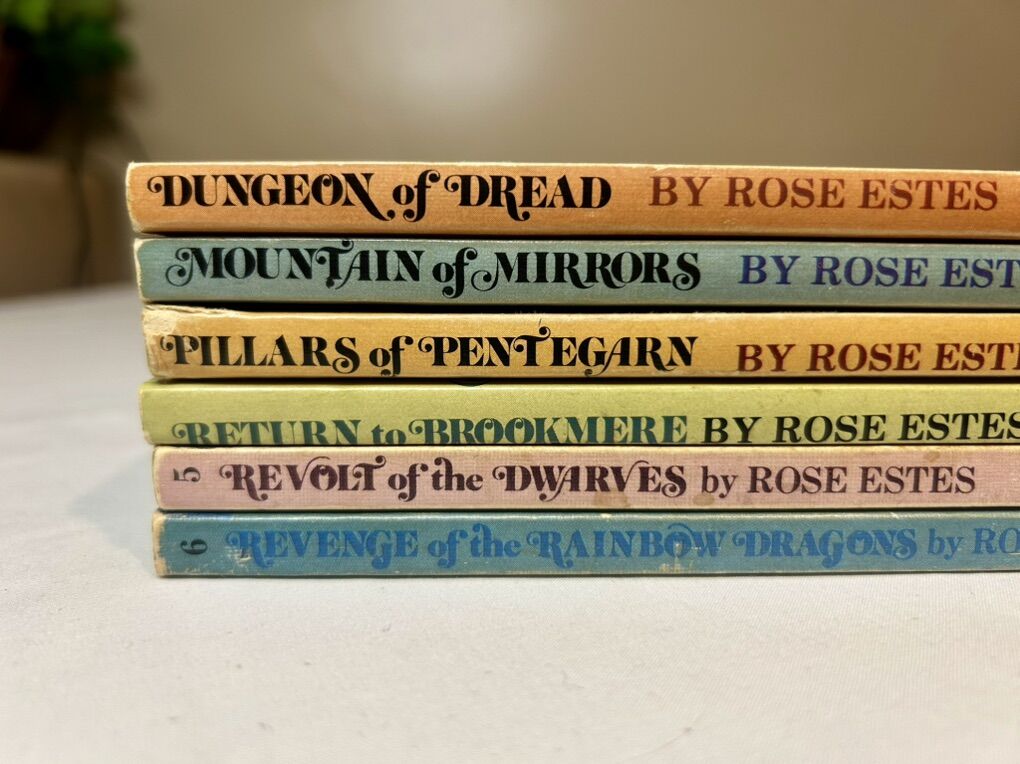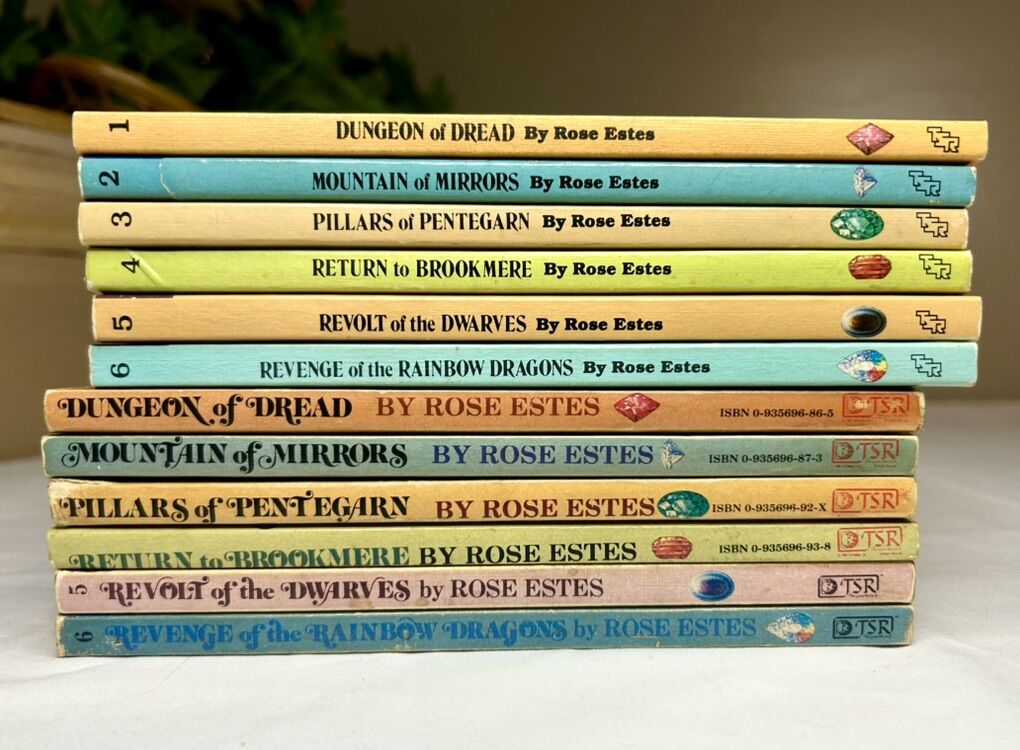 Includes: • Dungeon of Dread (#1) 2nd print • Mountain of Mirrors (#2) 2nd print • Pillars of Pentegarn (#3) 2nd print • Return to Brookmere (#4) 1st print • Revolt of the Dwarves (#5) 1st print • Revenge of the Rainbow Dragons (#6) 1st print