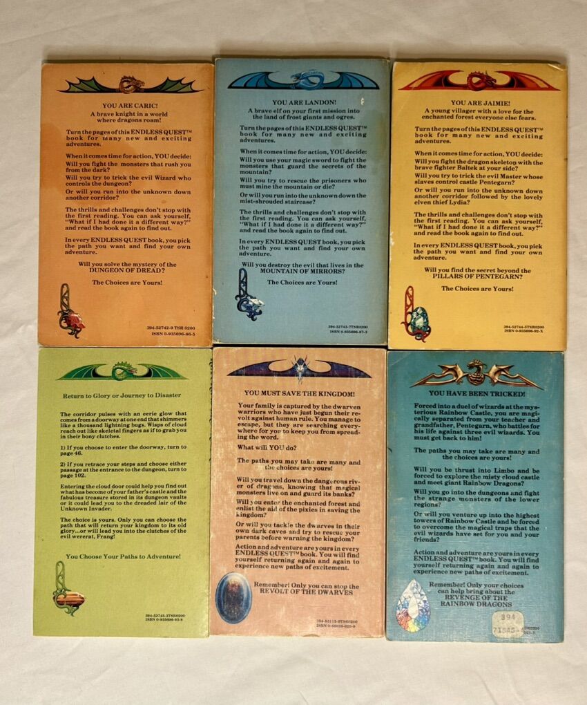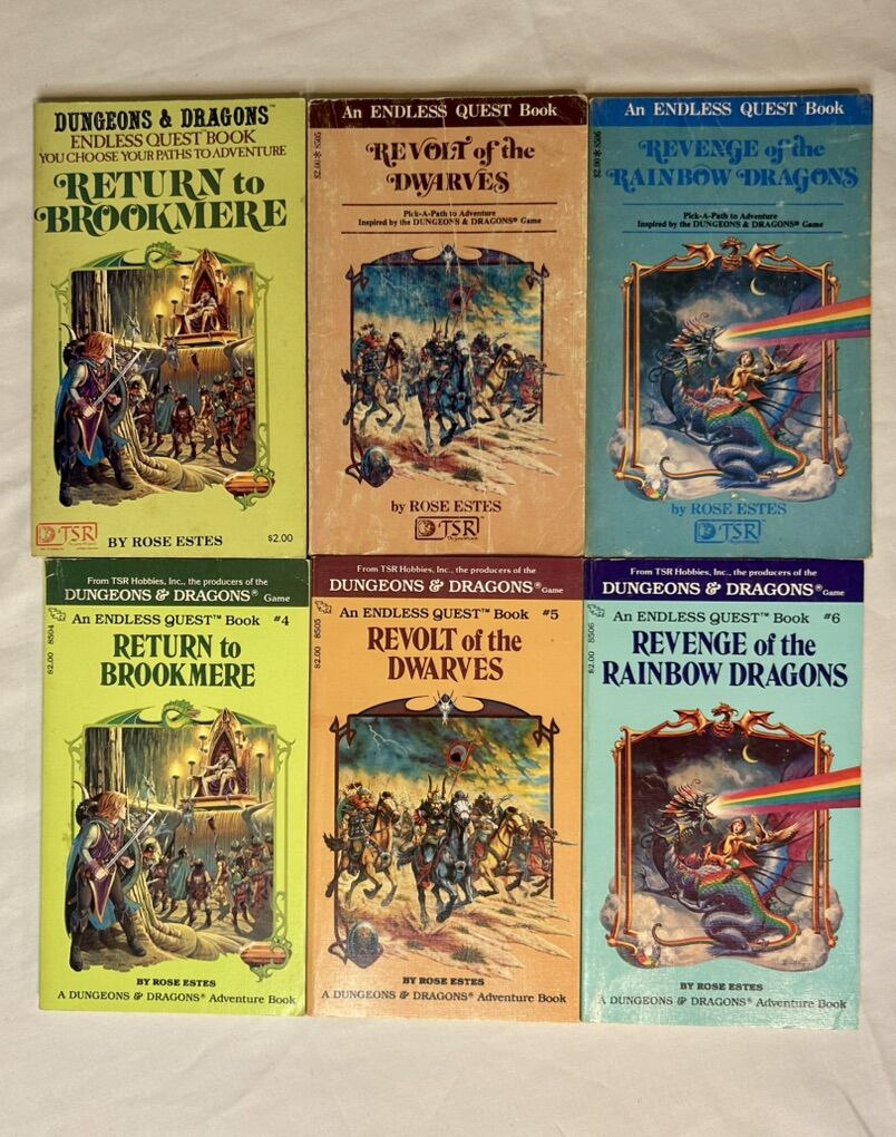 PayPalRare early printings (1st & 2nd print runs) of the first six Dungeons & Dragons Endless Quest books from TSR’s original 1980s release. These are the foundational titles that collectors look for. Price reflects rarity and condition of these early printings. Flexible for serious buyers/collectors.