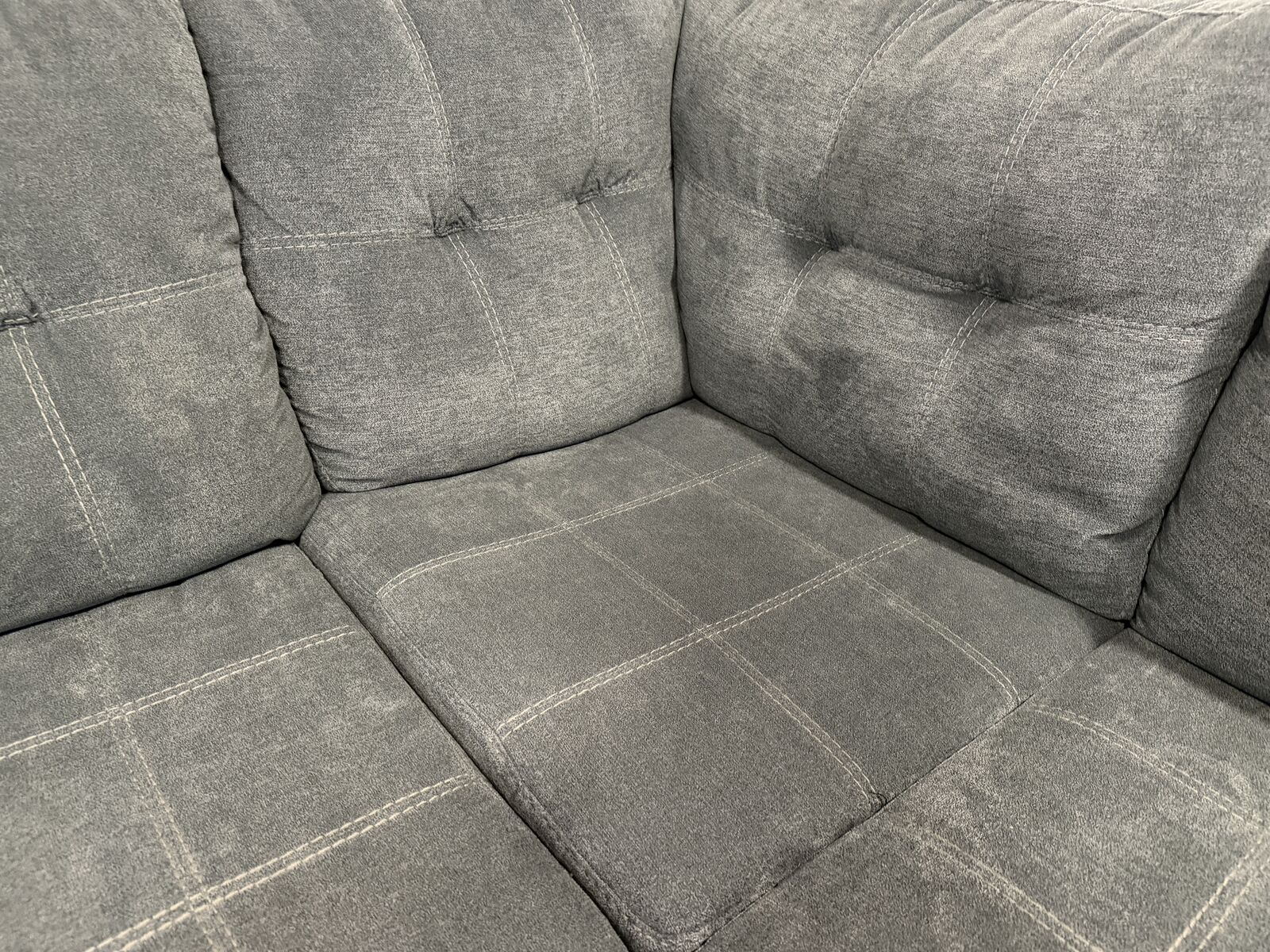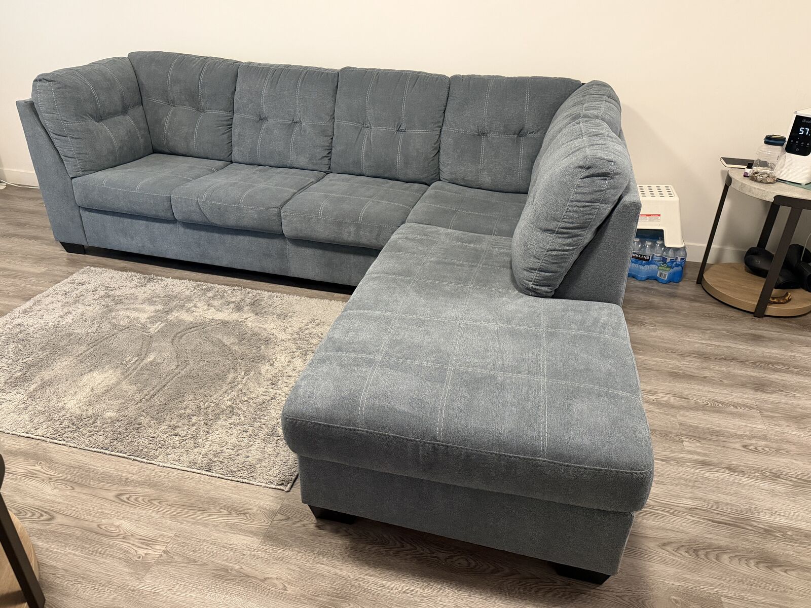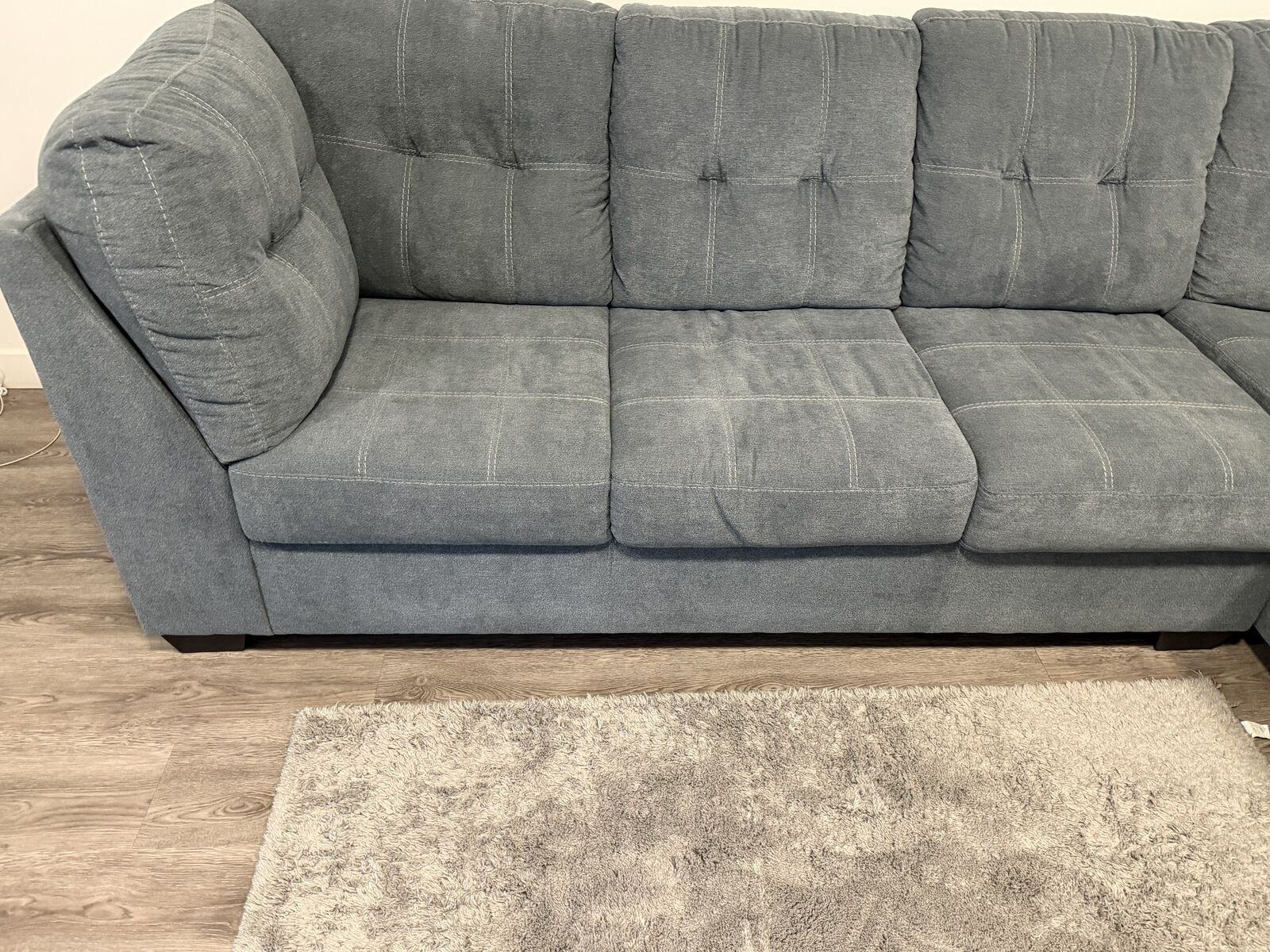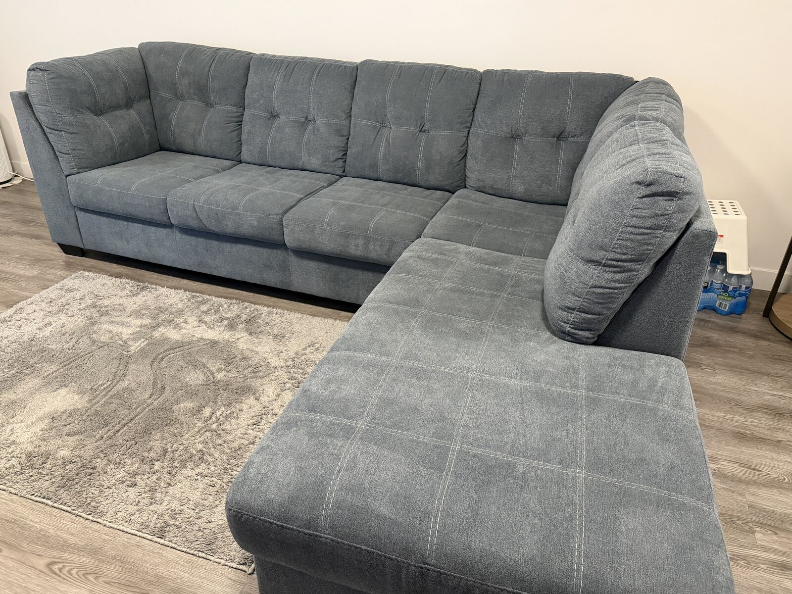 ZelleSectional with chaise blends comfort and modern style effortlessly. The denim‑inspired upholstery gives it a versatile, timeless look, while the clean lines and stitched detailing add a contemporary touch. It’s designed for everyday relaxation—the spacious chaise is perfect for stretching out after a long day.