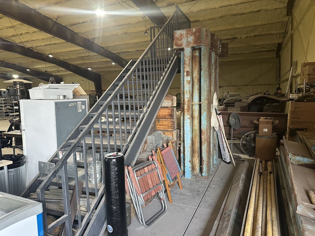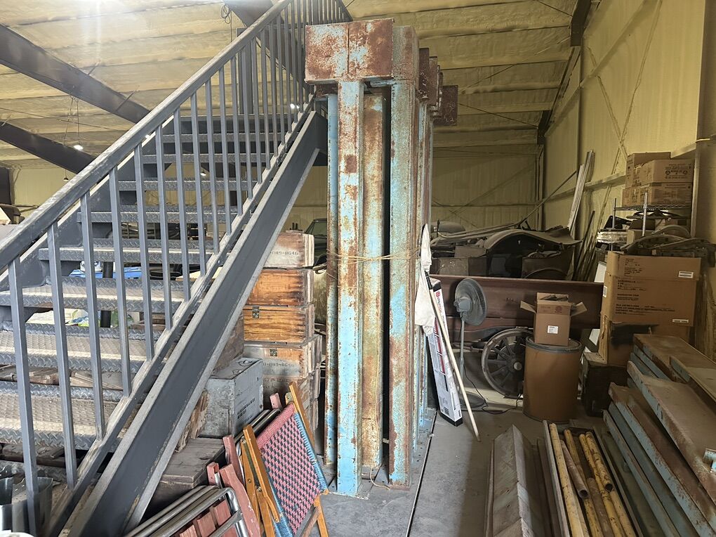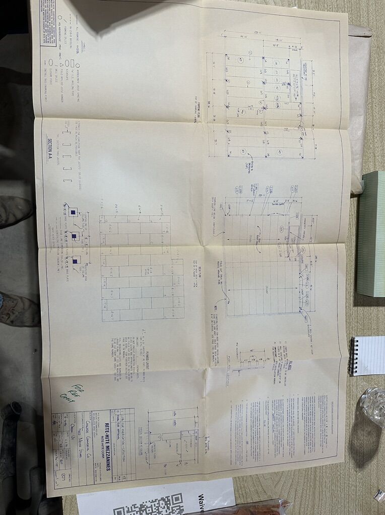 38’ 6” x 29’ 11” mezzanine. 96” clear, 108-3/4” Overall Height(Without plywood decking) Rated for 100 lbs per sq/in. I have all the beams, posts, guardrails, and b decking. Typically plywood would be added on top of the b decking.