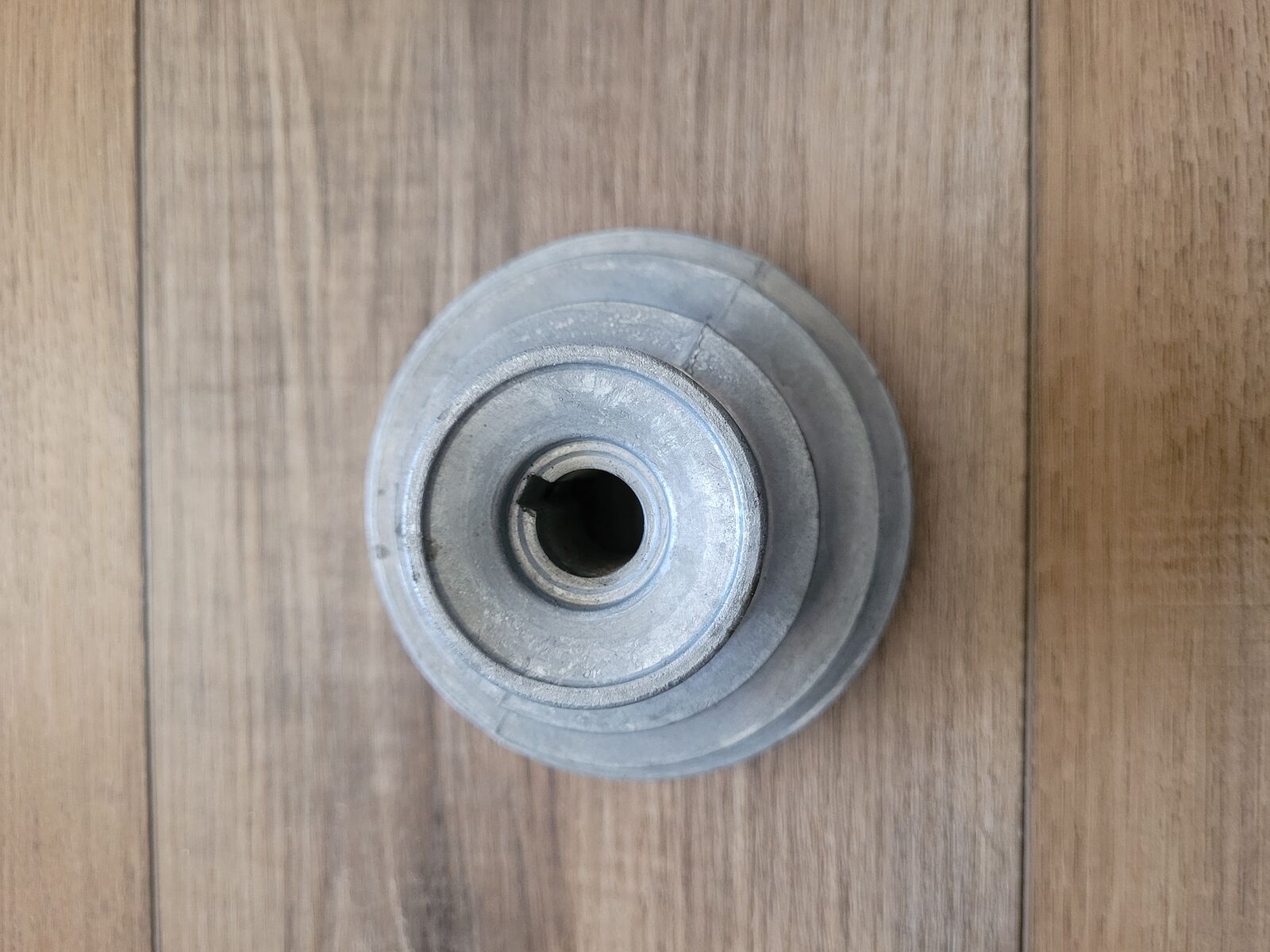 New 4 Step Pulley for replacement in machines with adjustable speeds or for a new creation. Has a 5/8 Inch keyed bore with a set screw. Inner diameters of each step are as follows: 1.135, 1.640, 2.455 and 3.015. For use with typical A section V belts with a 1/2 inch width. Cash only