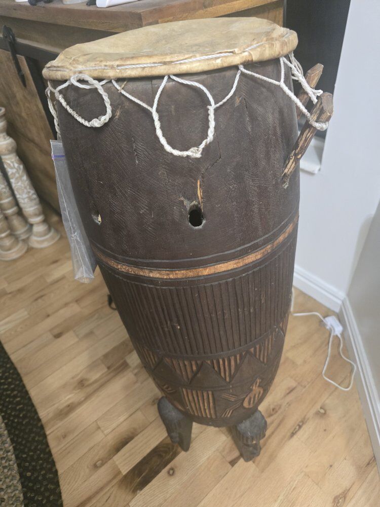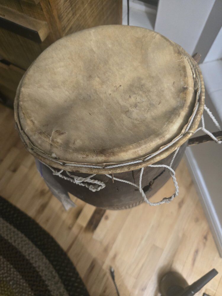 old drum appears to have a skin top.