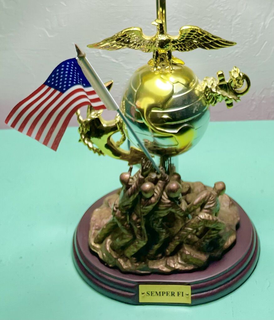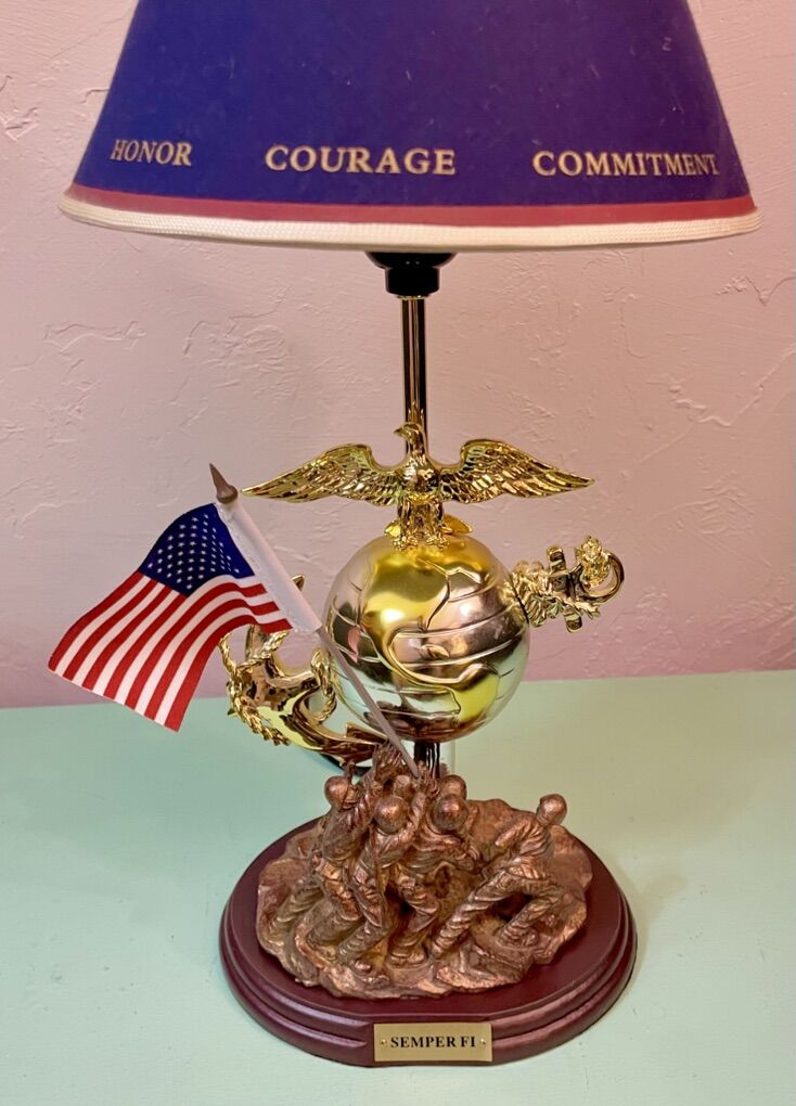 VenmoUSMC THIS IS A PROUD SYMBOL OF THE UNITED STATES MARINE CORPS DESIGN DESK OR TABLE STYLE LAMP! Wood Base With Bronze and Gold accents showing off the True Spirit of the USA MARINE’S this is a great Collectors Edition! $225.00
